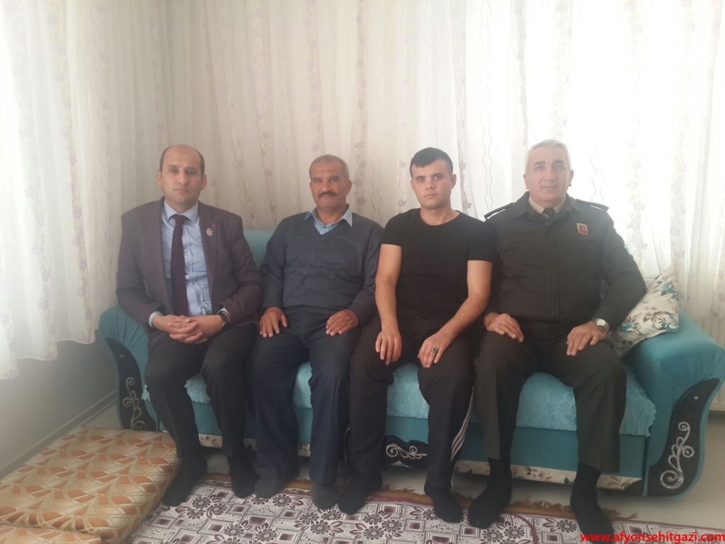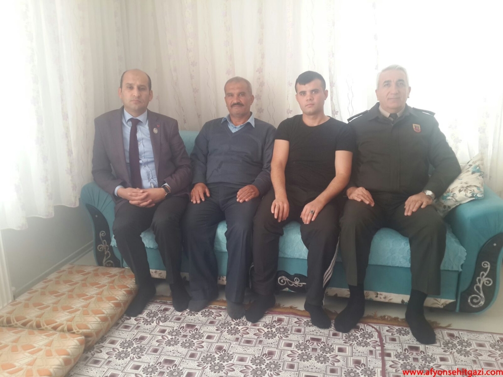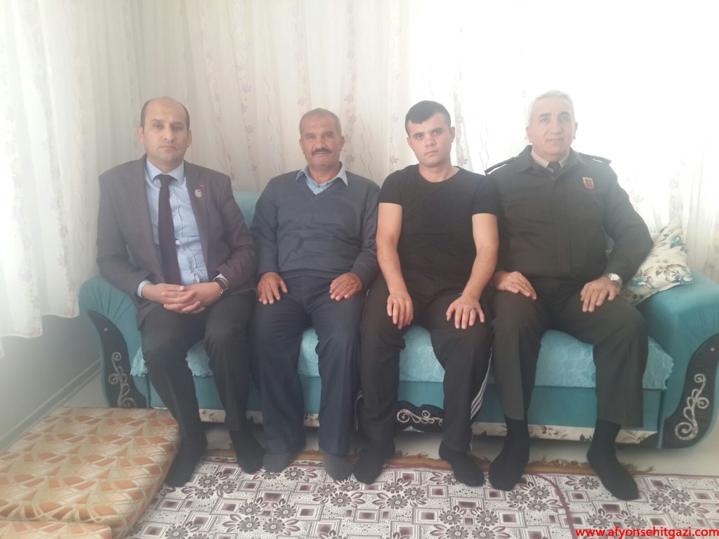 Afyonkarahisar İl Jandarma Komutanı J.Kd.Alb.Orhan Sırma ve dernek başkanımız İsmail Kumartaşlı 01-10-2017 tarihinde Şırnak Cizre de çatışma esnasında yaralanan J. Uzman Onbaşı Feyzullah Sarıçiçek’i evinde ziyaret etti.