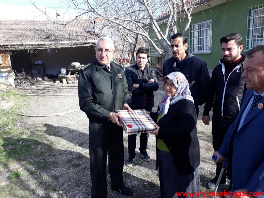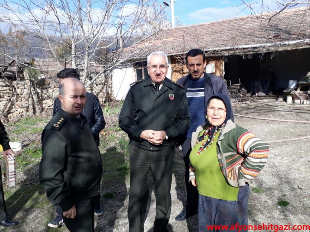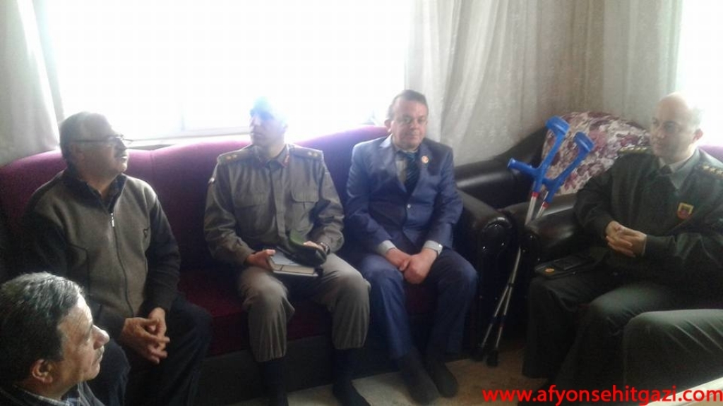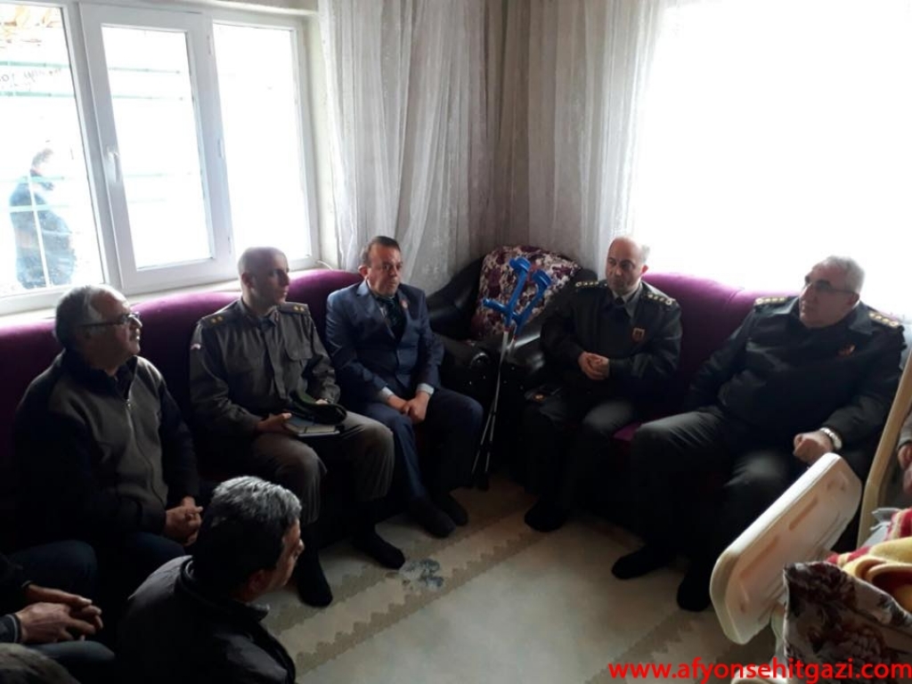 Dinar’da hazır bulunan Dinar ilçe jandarma Komutanı Üsteğmen Serkan Ateş ve Türkiye Harp Malulü Gaziler, Şehit Dul ve Yetimler Derneği Dinar Temsilcisi Hasan Ceylan Afyonkarahisar il Jandarma Komutanı J.Kd.Alb. Orhan Sırma ve yardımcısı J.Alb.Tamer Sert’i karşılayarak gazimizin baba ocağına geldiler. Gazimizin evinde bir süre sağlık durumu ve ailesinin hakkında bilgiler aldılar.