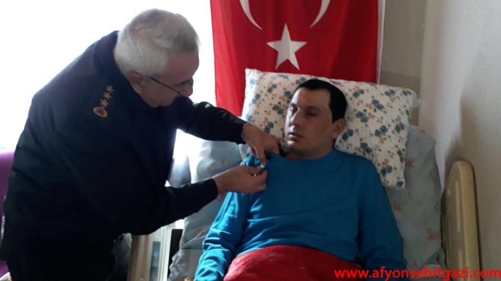 Komutanlar Şırnak’ın Cizre caddesi üzerinde, içinde bulunduğu aracı kırmızı ışıkta beklerken terör örgütü PKK’lılar tarafından uzun namlulu silahlarla saldırıya uğrayıp 8 kurşunla ağır yaralanan ve yaklaşık 7 ay Ankara GATA’da tedavi gören J.Uzman Çavuş Nuri Karakaş’ı, Dinar’a bağlı Çakıcı köyündeki baba evinde ziyaret ederek Jandarma Genel Komutanlığı tarafından adına tevci edilen Malül Gazi Rozetini teslim etti.