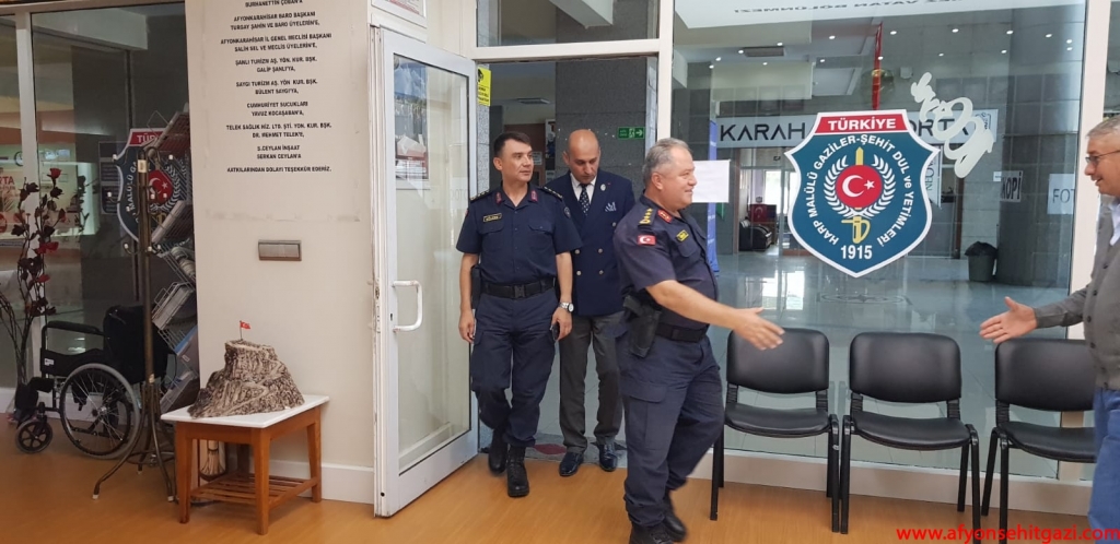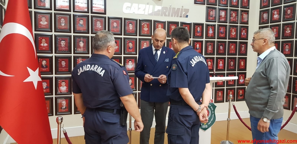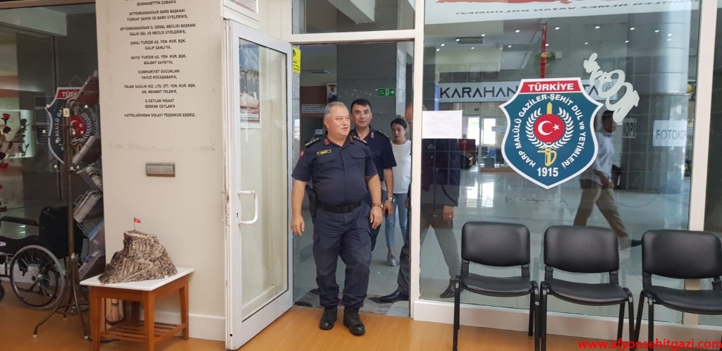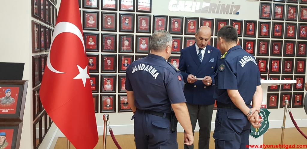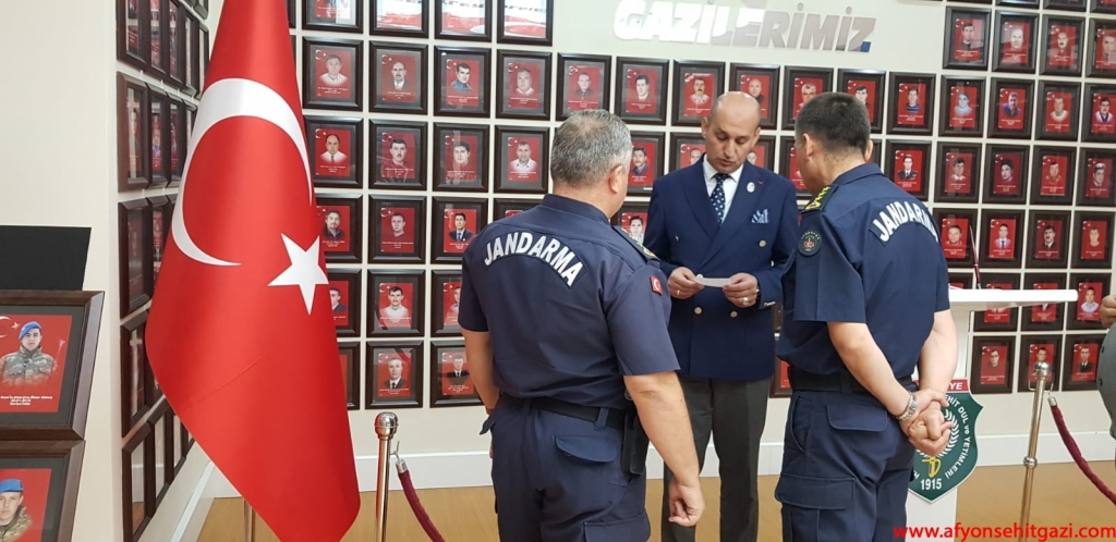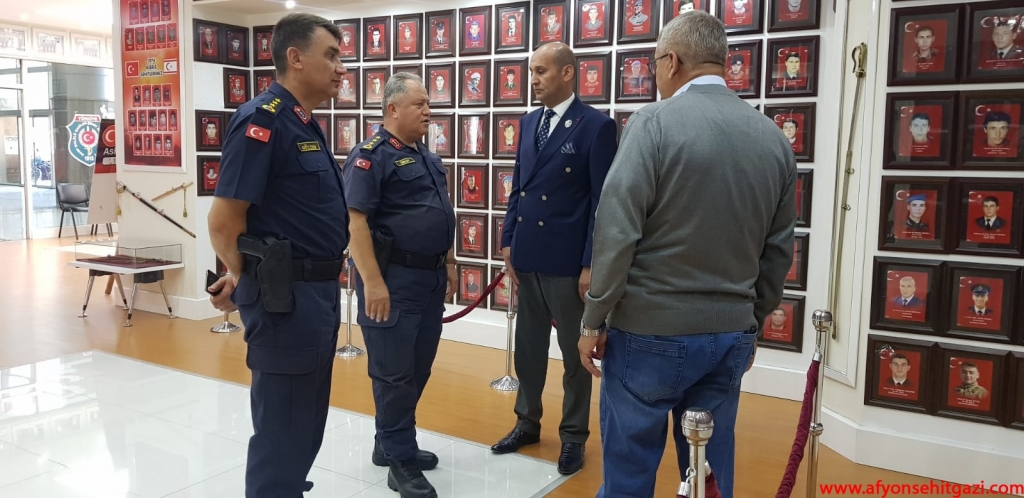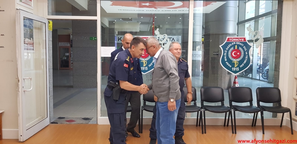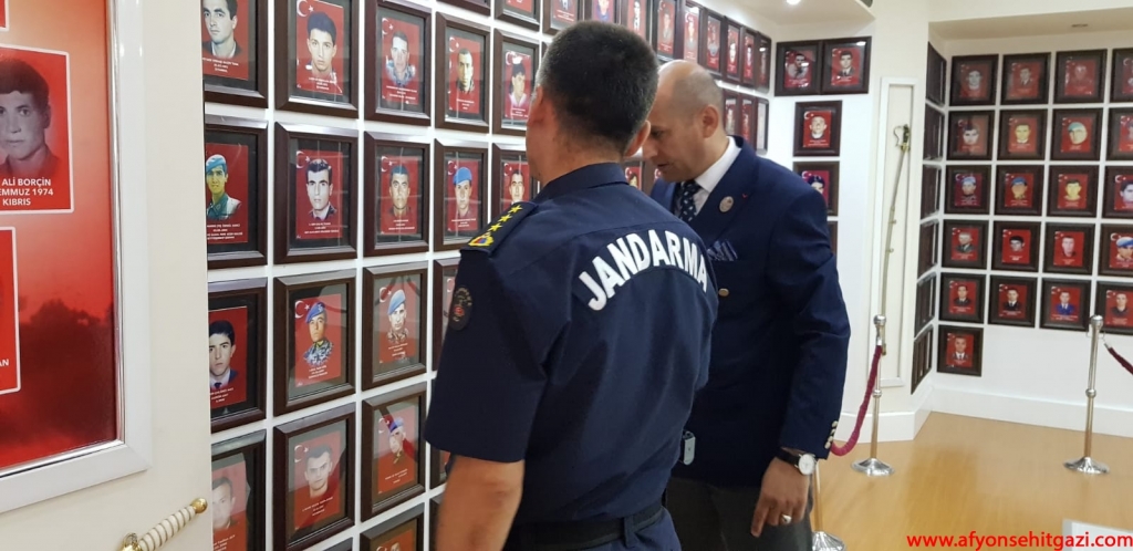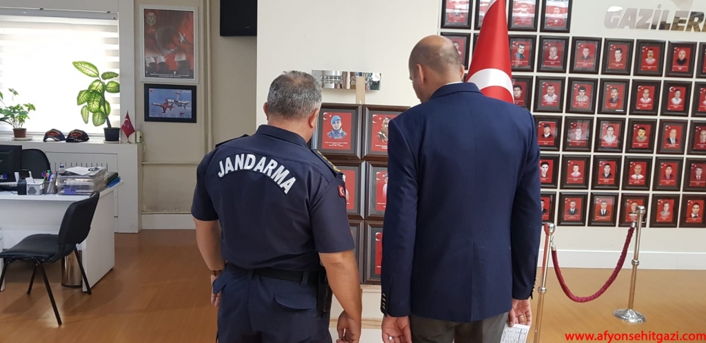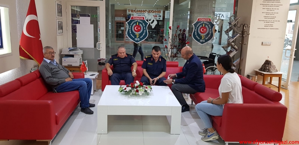 İlimize yeni atanan İl Jandarma Komutan yardımcılara Jandarma Albay Erol Ürküt ve Jandarma Albay Halit Gülten, Türkiye Harp Malulü Gaziler, Şehit Dul ve Yetimleri Derneği Afyonkarahisar Şubesini ziyaret ettiler. Şehit fotoğrafları arasında görev arkadaşlarını gören komutanların ziyaretinde duygu dolu anlar yaşandı.
