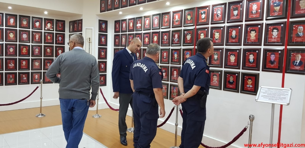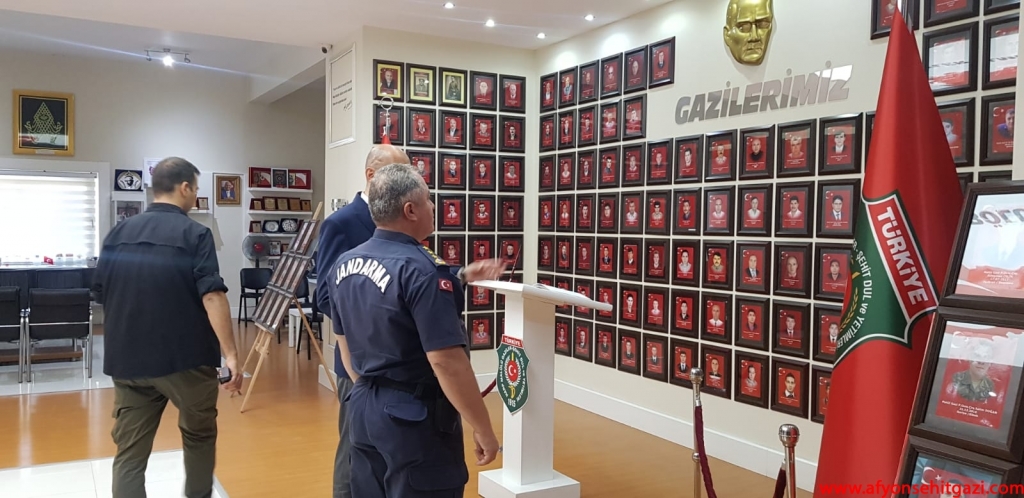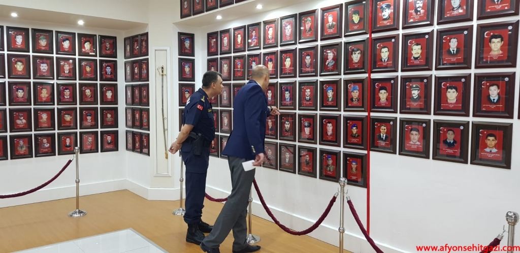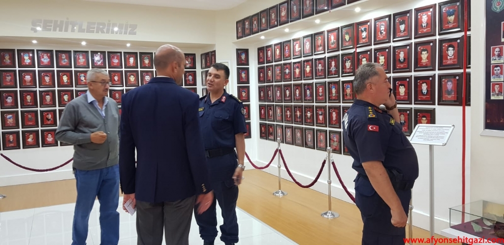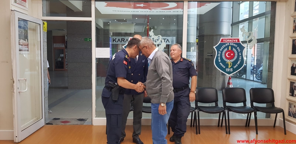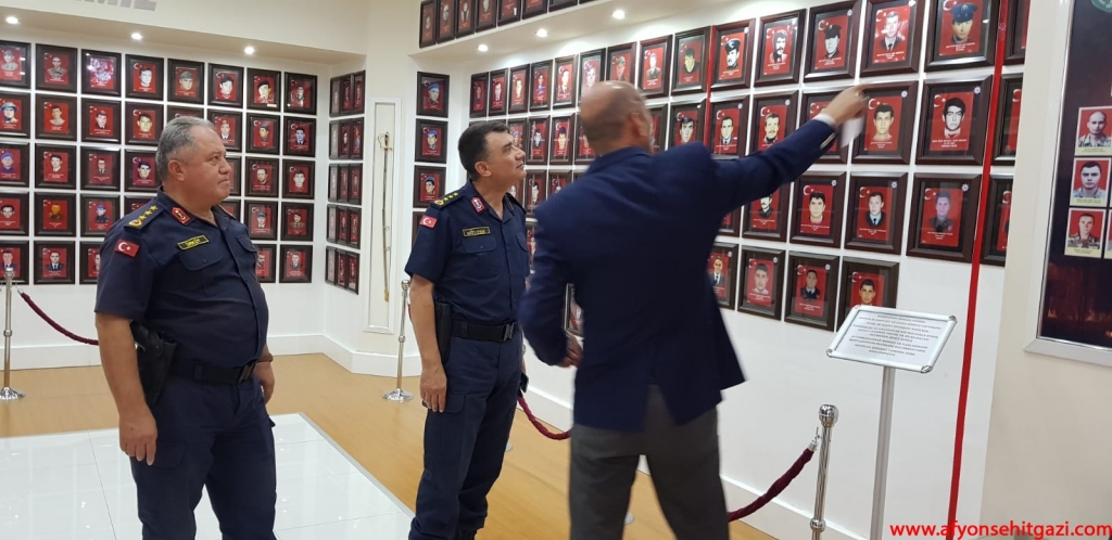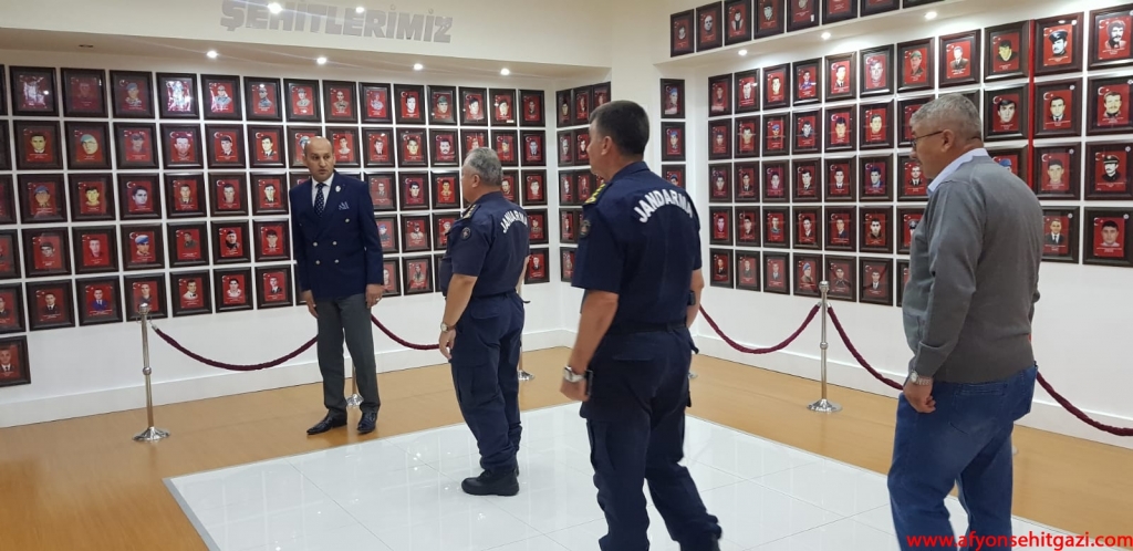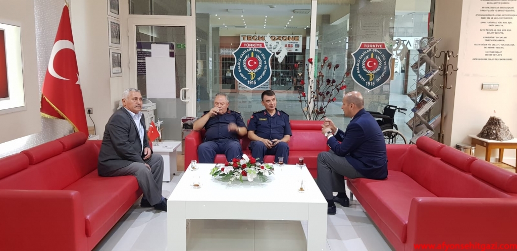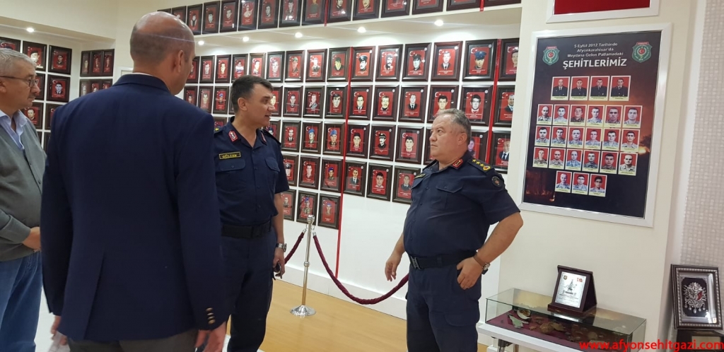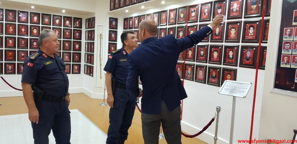 İlimize yeni atanan İl Jandarma Komutan yardımcılara Jandarma Albay Erol Ürküt ve Jandarma Albay Halit Gülten, Türkiye Harp Malulü Gaziler, Şehit Dul ve Yetimleri Derneği Afyonkarahisar Şubesini ziyaret ettiler. Şehit fotoğrafları arasında görev arkadaşlarını gören komutanların ziyaretinde duygu dolu anlar yaşandı.