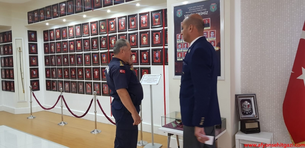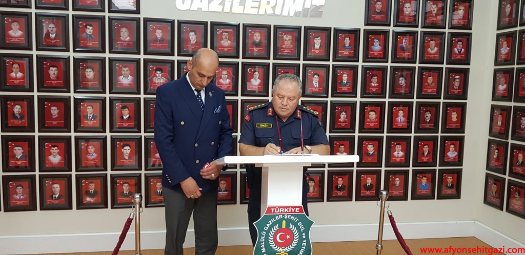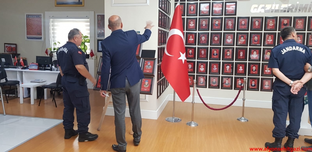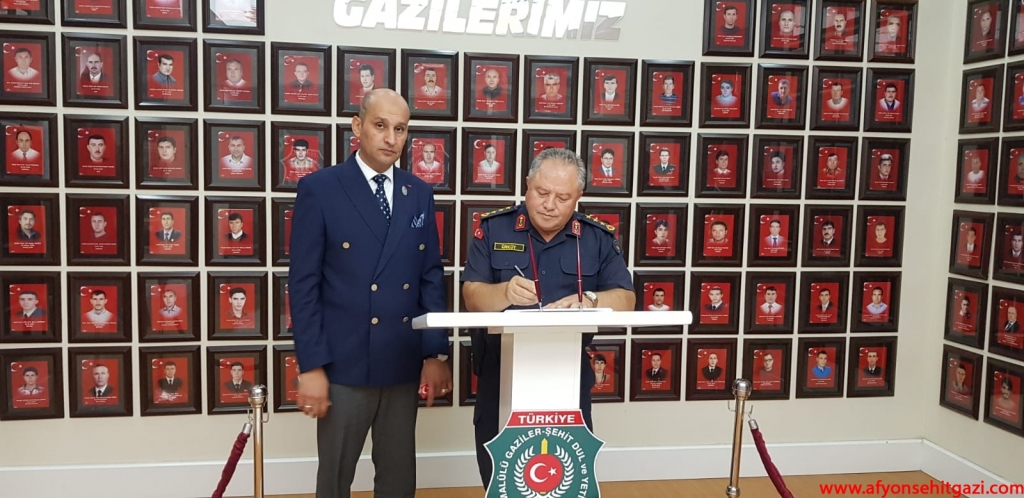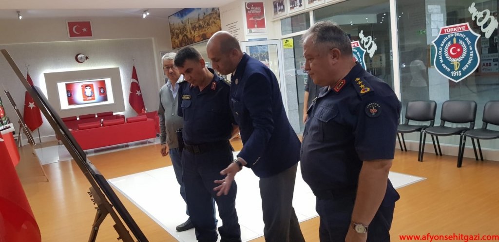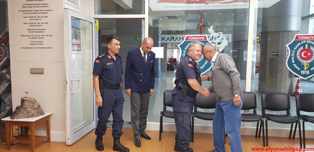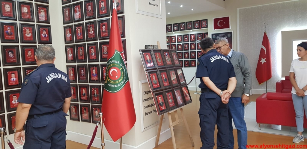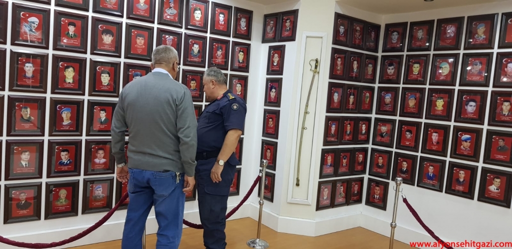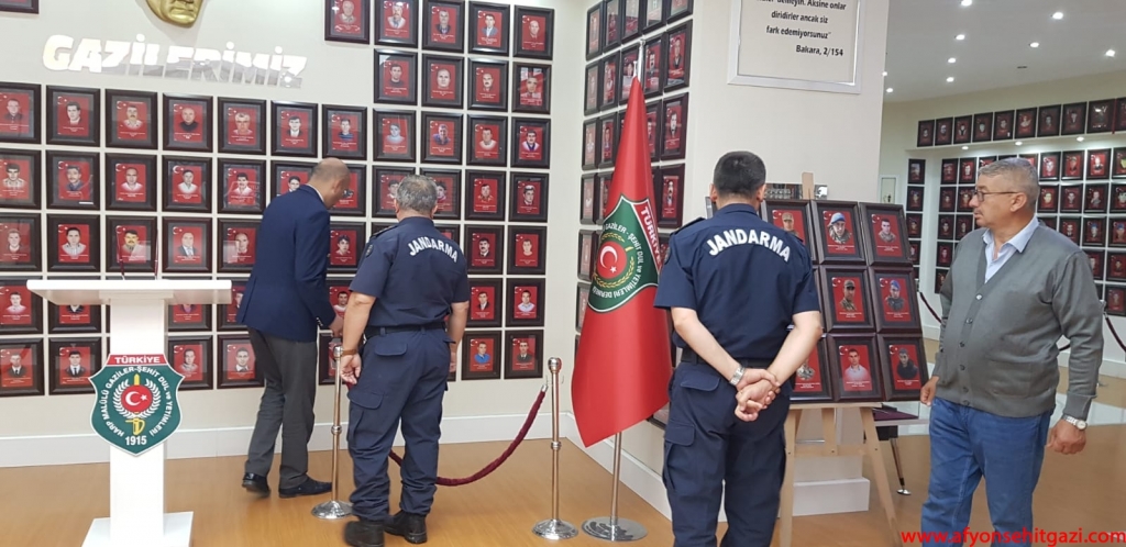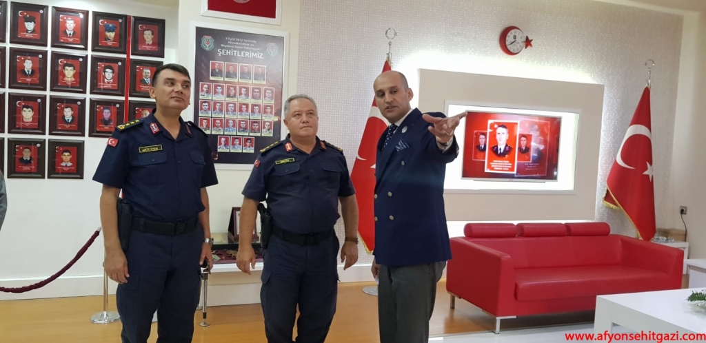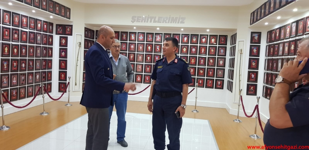 İlimize yeni atanan İl Jandarma Komutan yardımcılara Jandarma Albay Erol Ürküt ve Jandarma Albay Halit Gülten, Türkiye Harp Malulü Gaziler, Şehit Dul ve Yetimleri Derneği Afyonkarahisar Şubesini ziyaret ettiler. Şehit fotoğrafları arasında görev arkadaşlarını gören komutanların ziyaretinde duygu dolu anlar yaşandı.