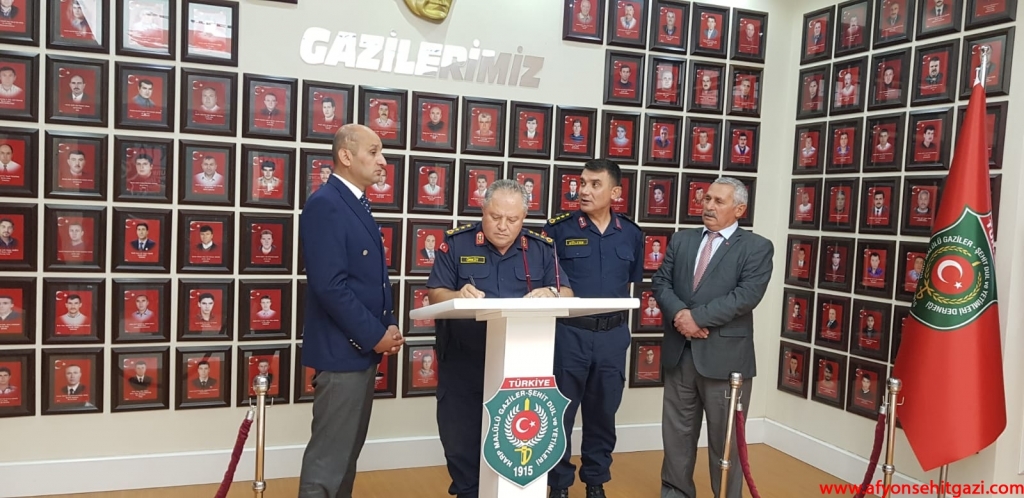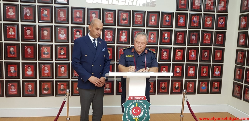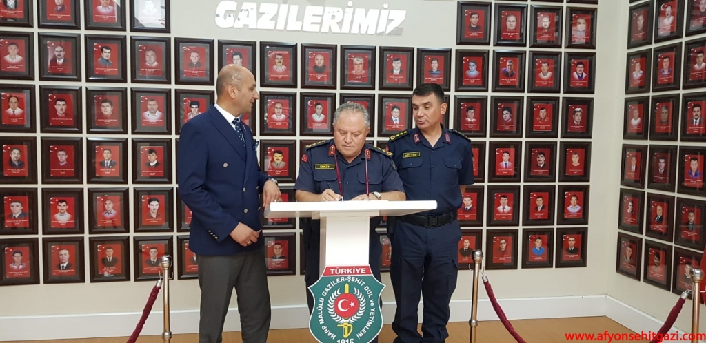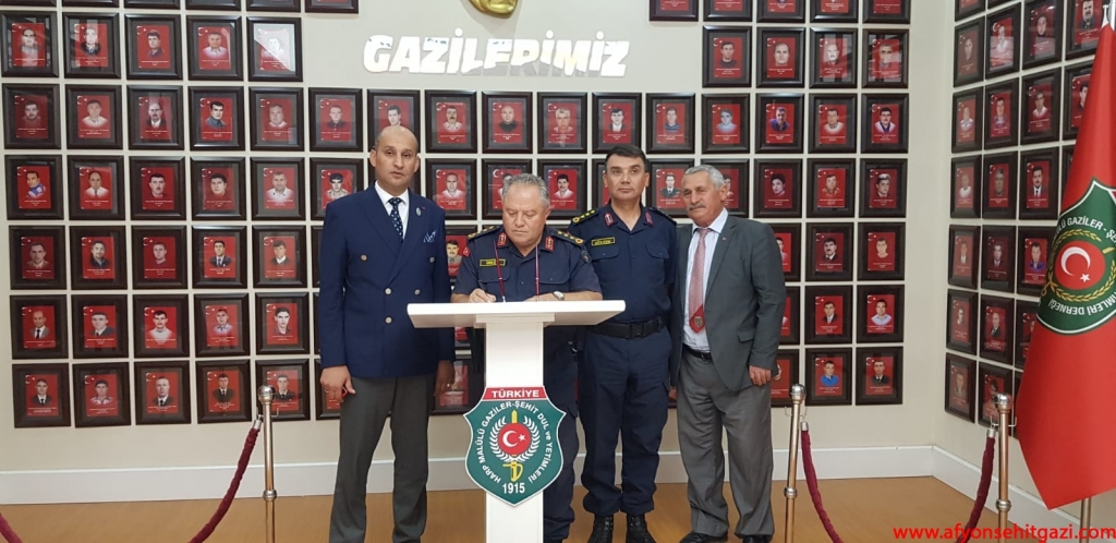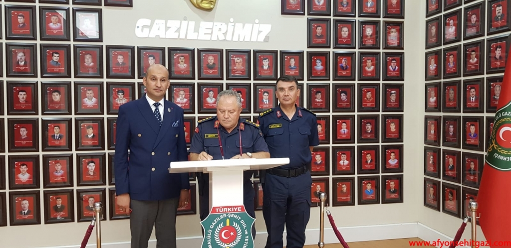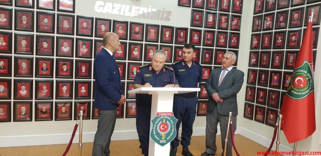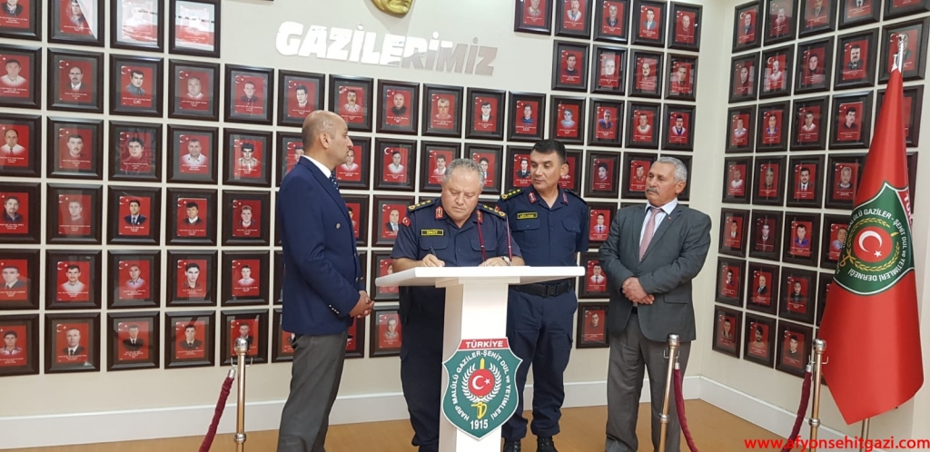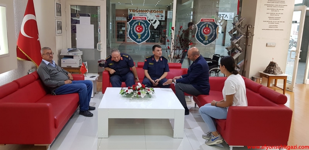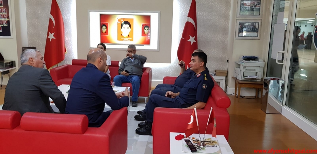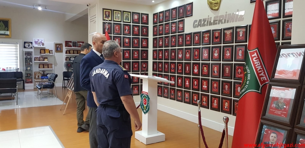 İlimize yeni atanan İl Jandarma Komutan yardımcılara Jandarma Albay Erol Ürküt ve Jandarma Albay Halit Gülten, Türkiye Harp Malulü Gaziler, Şehit Dul ve Yetimleri Derneği Afyonkarahisar Şubesini ziyaret ettiler. Şehit fotoğrafları arasında görev arkadaşlarını gören komutanların ziyaretinde duygu dolu anlar yaşandı.