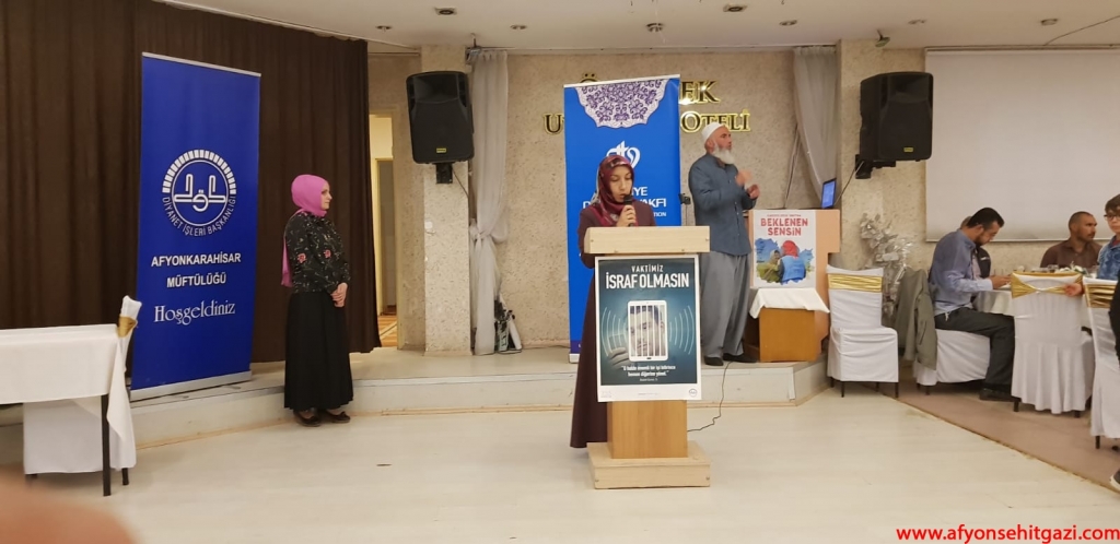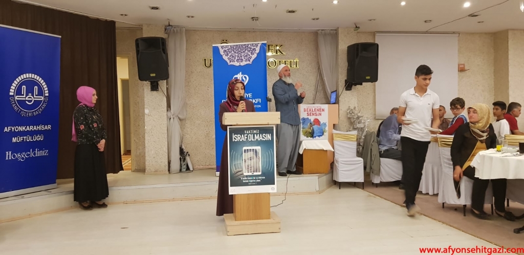 Afyonkarahisar İl Engelli Koordinatörü Asiye Ersarı verilen iftar yemeğinde yaptığı konuşmada; “Bizleri bu güzel ve mübarek vakitlerde bir araya toplayan rabbimize sonsuz şükürler ve Rehberimiz Efendimiz A.S’a salat ve selam ederekkonuşmama başlamak istiyorum.Hepinize davetimize icabet edip buraya teşrif ettiğiniz için İl Müftülüğümüz adına teşekkür ediyorum.