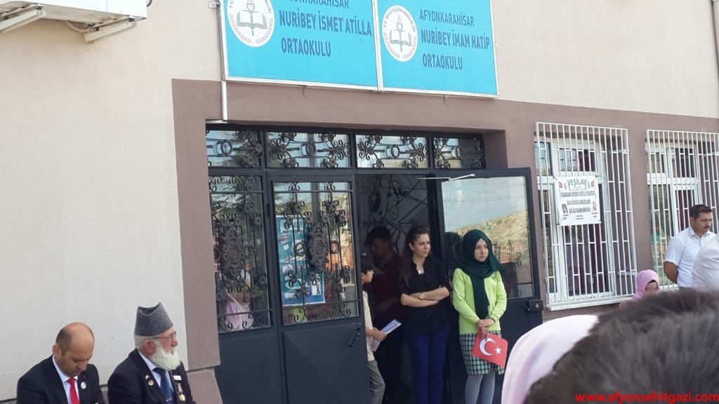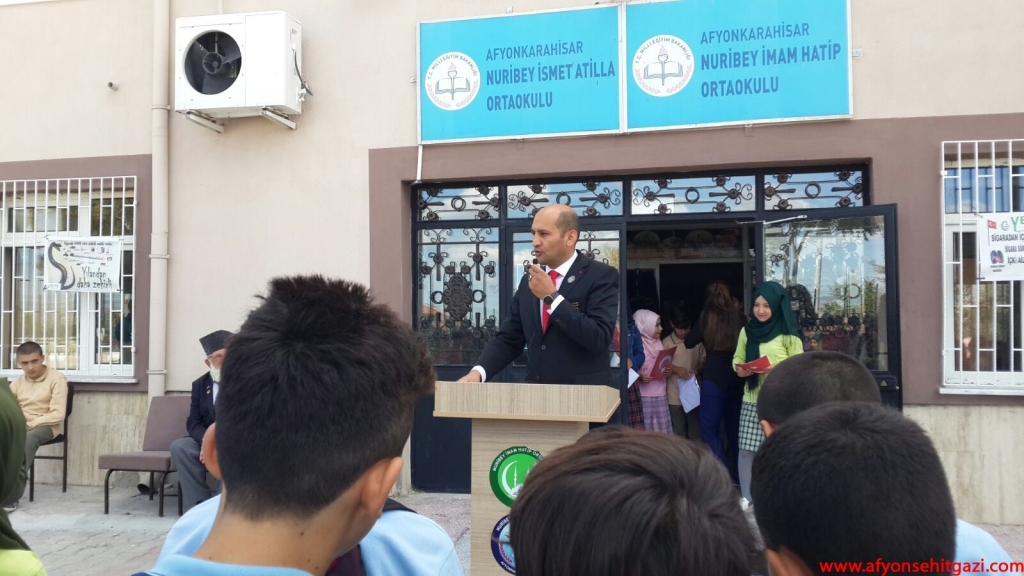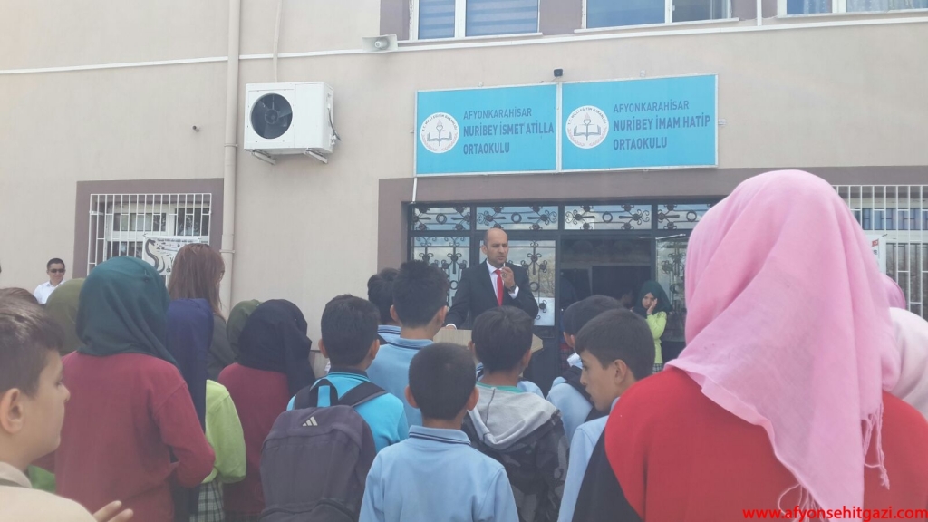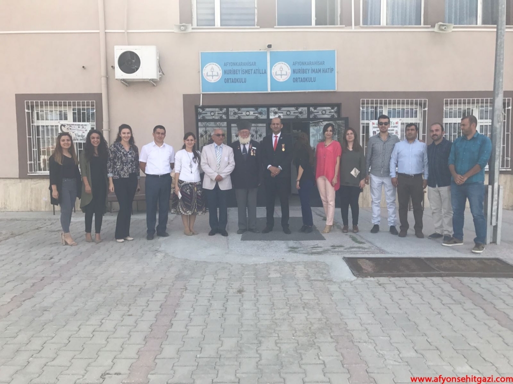 Son olarak Afyonkarahisar Nuribey Kasabası İsmet Atilla Orta Okulu ve İsmet Atilla İmamhatip ortaokulu davetlisi olarak öğrenciler ile buluşan Kumartaşlı ve Koç okul önünde öğrencilere Şehitlik, Gazilik, Vatan Sevgisi,15 Temmuz Darbe Girişimi, Şehitlerimiz hakkında bilgilendirme yaptı söyleşide Gazi Koç Kıbrıs Savaşı anılarını anlatarak öğrencilere derslerine çalışmaları konusunda öğütler verdi. Son olarak öğrenciler ile hatıra fotoğrafı çekildi Okul Müdürü M.Çetin Kumartaşlı Başkan Kumartaşlı’ya teşekkür etti