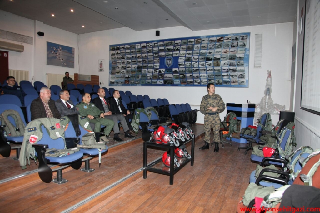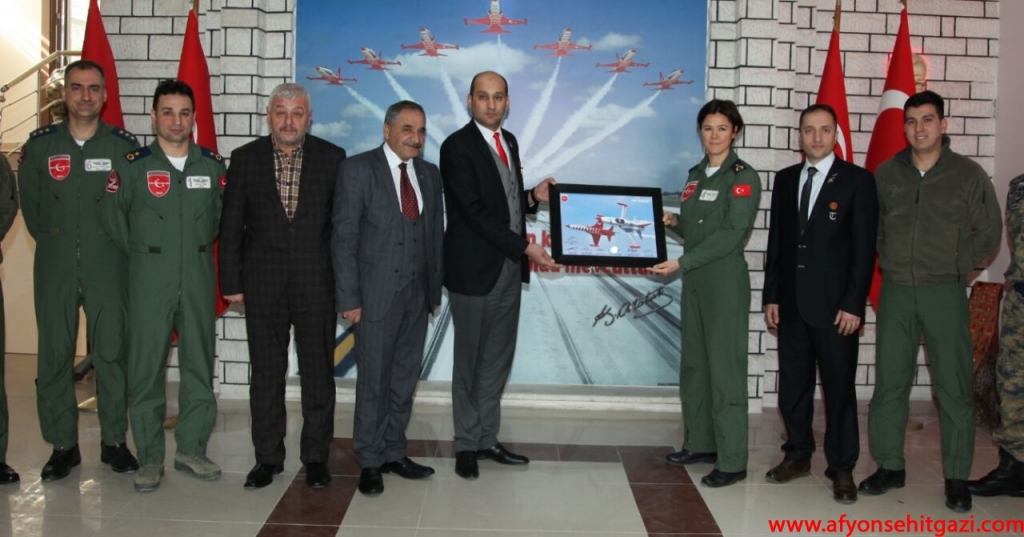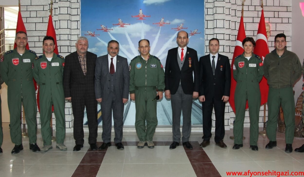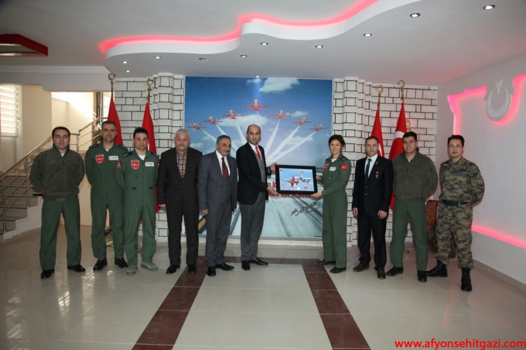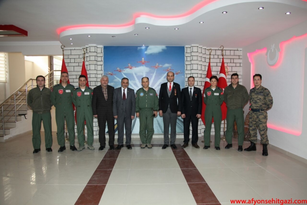 Türkiye Harp Malülü Gaziler Şehit Dul ve Yetimleri Derneği Afyonkarahisar Şube Başkanı İsmail Kumartaşlı ve dernek yöneticiler Eski Afyonkarahisar Hava Meydan Komutanı olan ve Konya 3ncü Ana Jet Üst Komutanı olarak terfi alan Hv.Tuğgeneral Ergun ESKİCİ’yi makamında ziyaret ederek hayırlı olsun ziyaretinde bulundu ziyaretten sonra Türk Yıldızları Filo Komutanlığında Hava Pilot Binbaşı Esra Özatay ı ziyaret eden Kumartaşlı ve yönetim kurulu üyeleri Bnb.Özatay ve pilotlardan uçuş ve gösteriler hakkında sunumlu olarak bilgi aldı.Bnb.Özatay Şehitlerimize rahmet dileyerek dernek başkanı İsmail Kumartaşlı ve yönetim kurulu üyelerine Türk Yıldızlarına özel olan şapka,takvim,kalem,flar dan oluşan hediyeleri takdim etti.Hatira fotoğrafı çekildikten sonra Kumartaşlı ve ekibi Bnb.Özatay ve ekibine başarılar dileyerek teşekkür etti.