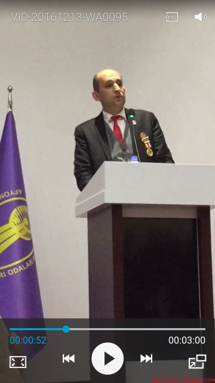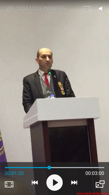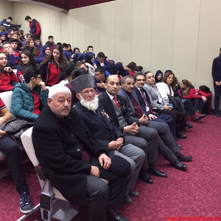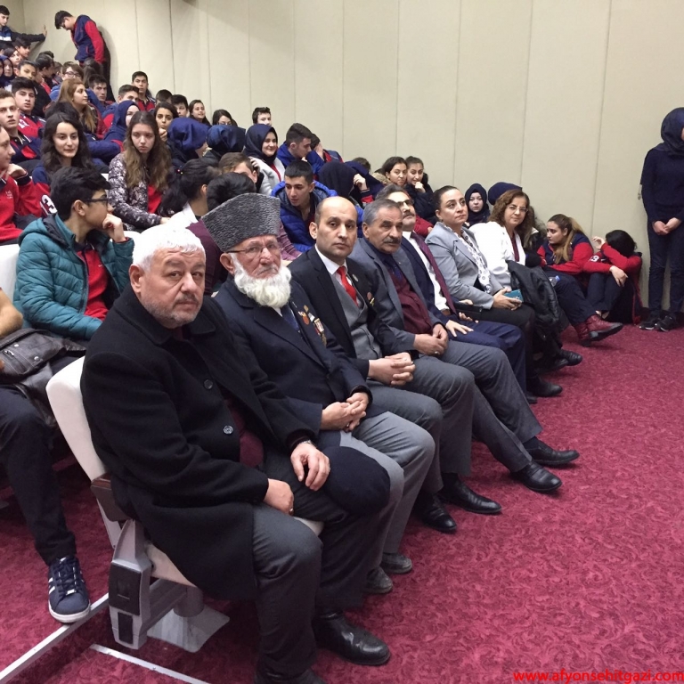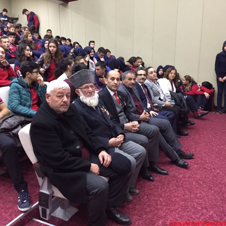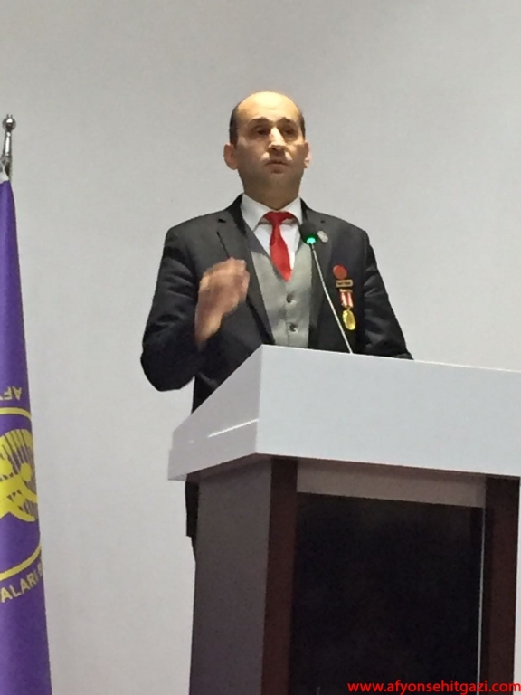 Türkiye Harp Malulü Gaziler, Şehit, Dul ve Yetimleri Derneği Afyonkarahisar Şubesi Başkanı Malul Gazi P. Uzm. Çvş. İsmail KUMARTAŞLI kendisini tanıtarak yaptığı konuşmasında; Öncelikle bizleri sizler ile buluşturan okul yönetimine ve değerli öğretmenimiz okul müdiresi Zehra Akduman’a teşekkür ederim. Dedi. Başından geçen gazilik anılarını, fiziksel ve psikolojik etkilenmelerini ve kendisinde bıraktığı izleri paylaştı. 101. yılını kutladıkları Dernek’lerini tanıtarak tarihsel gelişimi üzerinden bu günkü durumu ile ilgili bilgiler verdi. Şehitlik payesine ulaşanlarla ilgili Dernek olarak cenaze ve taziye esnasında yapılanları anlatarak, bir tek çakıl taşını dahi düşmanlara vermeyip, gerekirse yine savaşa gidip vatan için canını feda edebileceğini, terör örgütlerine yataklık edenlerin geçmişte de olduğunu ve asla yılmayacaklarını, PKK terör örgütünün nasıl gelişim gösterdiği ve ülkemize ne tür zararlar verdiği üzerine bilgilendirmeler yaptı.