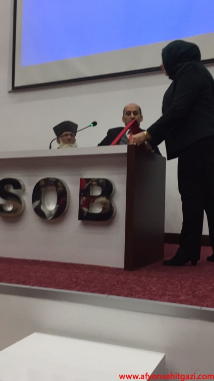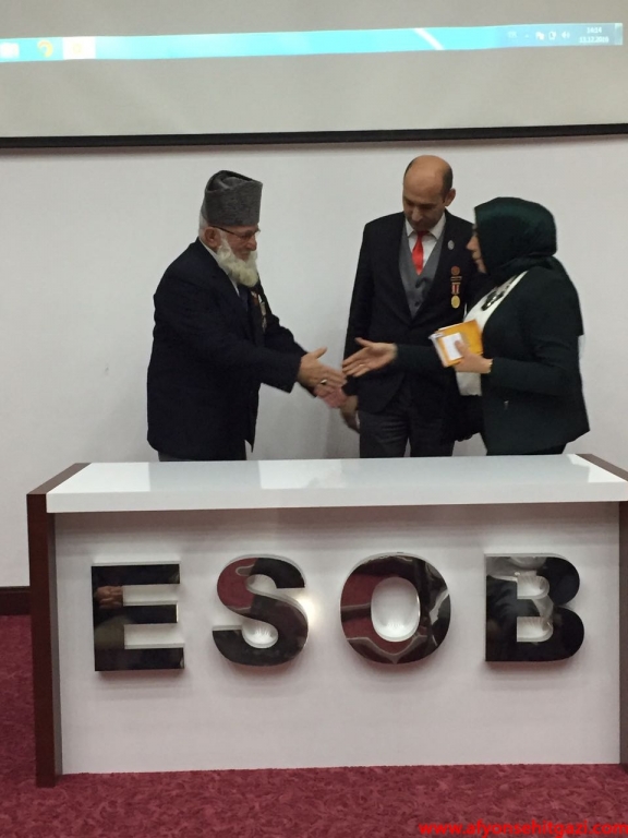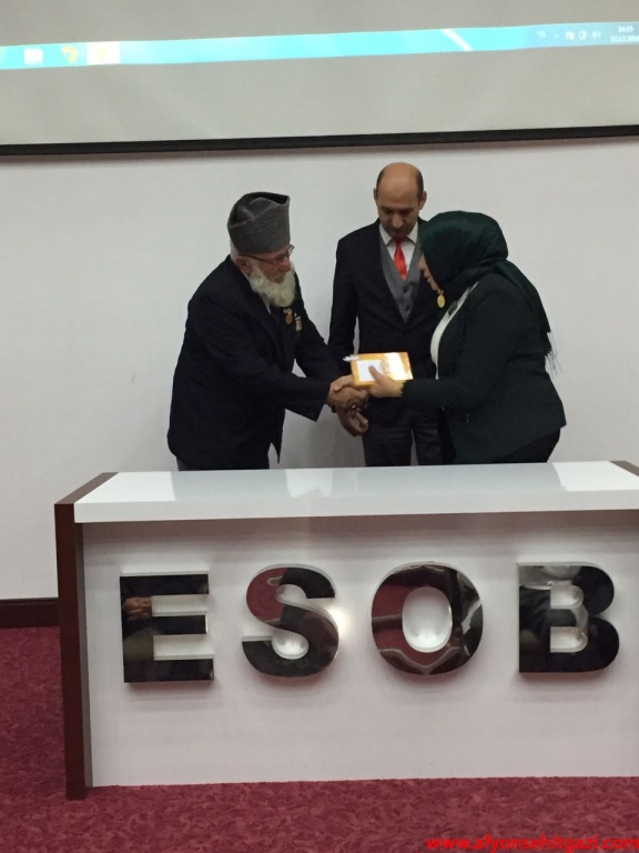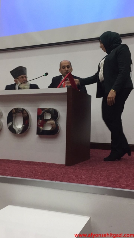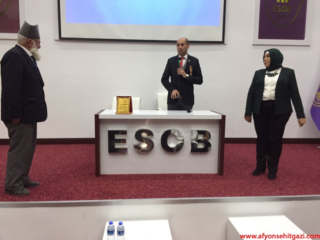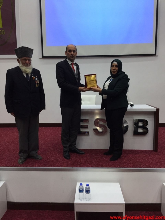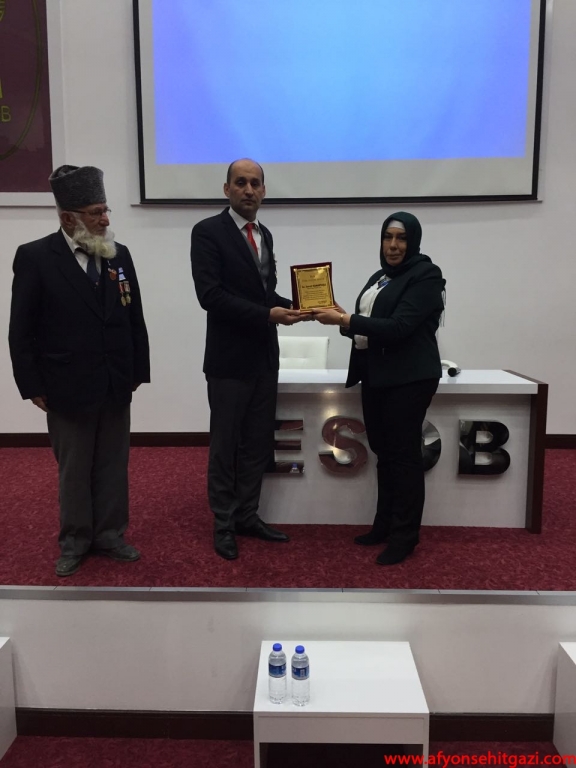 Konuşmaların ardından başkan Kumartaşlı’ya günün anısına okul yönetimi olarak okul Müdiresi Zehra Akduman plaket takdim etti.