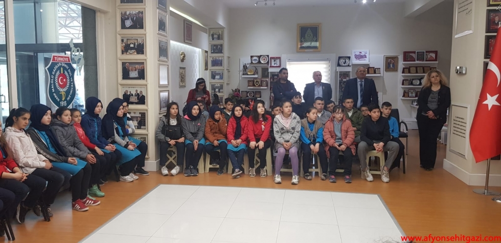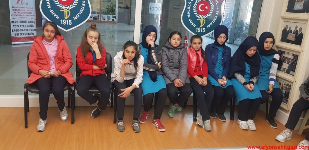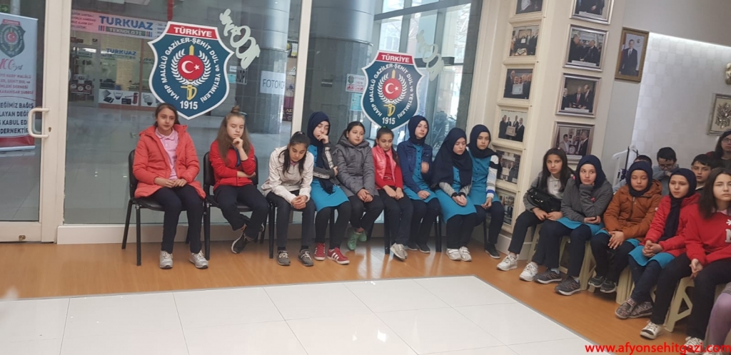 Derneğimiz Türkiye Harp Malulü Gaziler Şehit Dul ve Yetimleri Derneği Afyonkarahisar Şube Başkanlığı tarafından okullarda düzenlenen programlar ile öğrencilere şehitlik ve gazilik gaziler tarafından anlatılıyor. Program Türkiye Harp Malulü Gaziler Şehit Dul ve Yetimleri Derneği Afyonkarahisar Şube Başkanı Malül Gazi P. Uzm. Çvş. İsmail Kumartaşlı ve Kıbrıs Gazisi Tahsin Koç’un anıları, yaşadıkları, vatan sevgisi, bayrak sevgisi ile ilgili anlatımları ile devam ediyor. Programın son kısmında gazilerimiz öğrencilerin merak ettiği konulara yönelik sorularına cevap vererek programı sonlandırıyorlar.