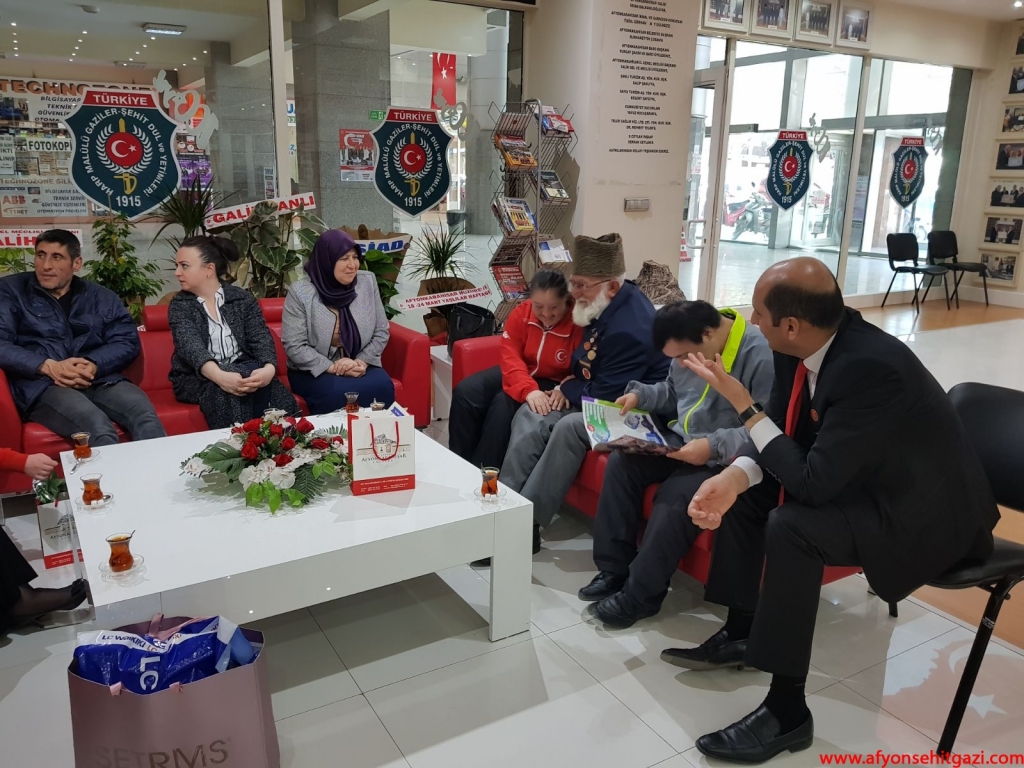 18 Mart Şehitlerimizi anma günü nedeniyle düzenlenen etkinlikler kapsamında Şehit Aileleri ve Gazilere ziyaretlerde bulunan Afyonkarahisar Down Sendromlular Yardımlaşma ve Dayanışma Derneği üyeleri Dernek Başkanı İsmail Kumartaşlı’dan Şehitlerimiz ve Gazilerimiz hakkında bilgiler aldılar.