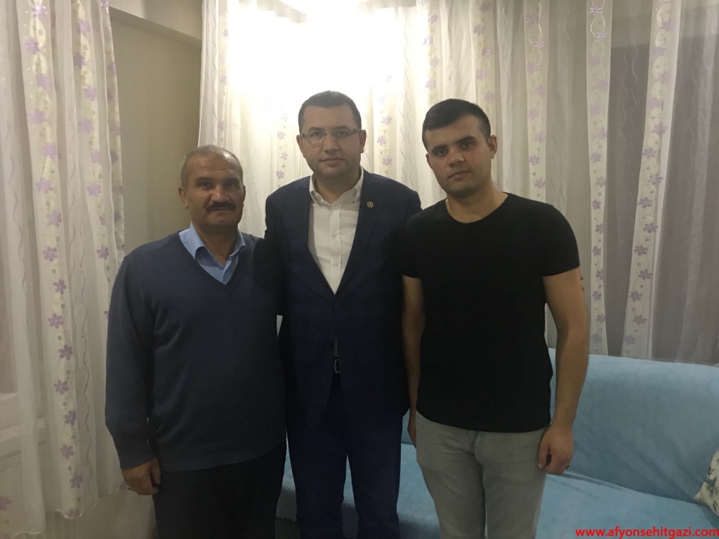 Milliyetçi Hareket Partisi Afyonkarahisar Milletvekili Mehmet Parsak, Milliyetçi Hareket Partisi Afyonkarahisar İl Başkanı Mehmet Karagöz ve dernek başkanımız İsmail Kumartaşlı 01-10-2017 tarihinde Şırnak Cizre de çatışma esnasında yaralanan J. Uzman Onbaşı Feyzullah Sarıçiçek’i evinde ziyaret etti.