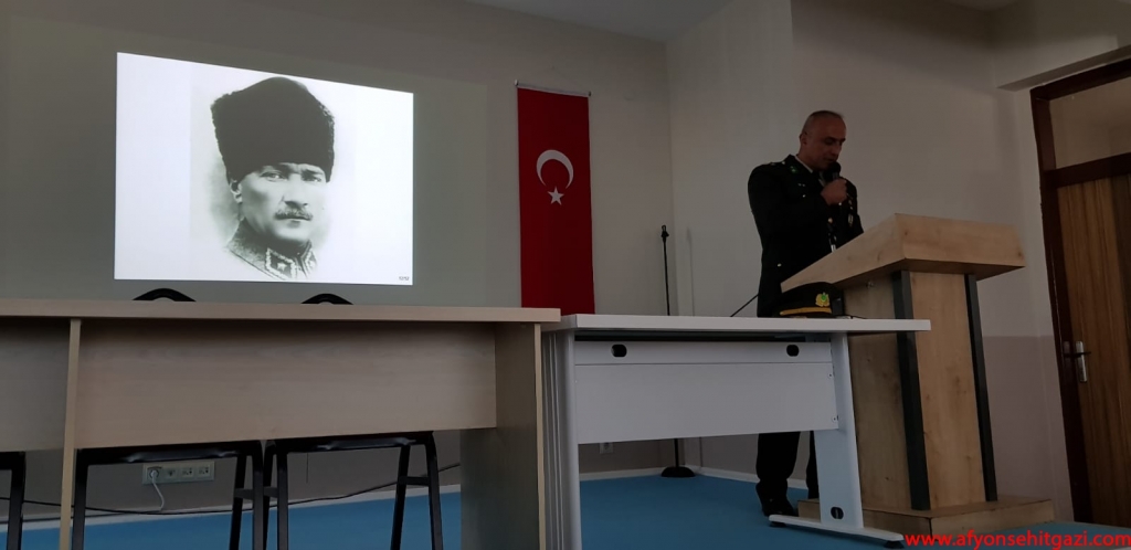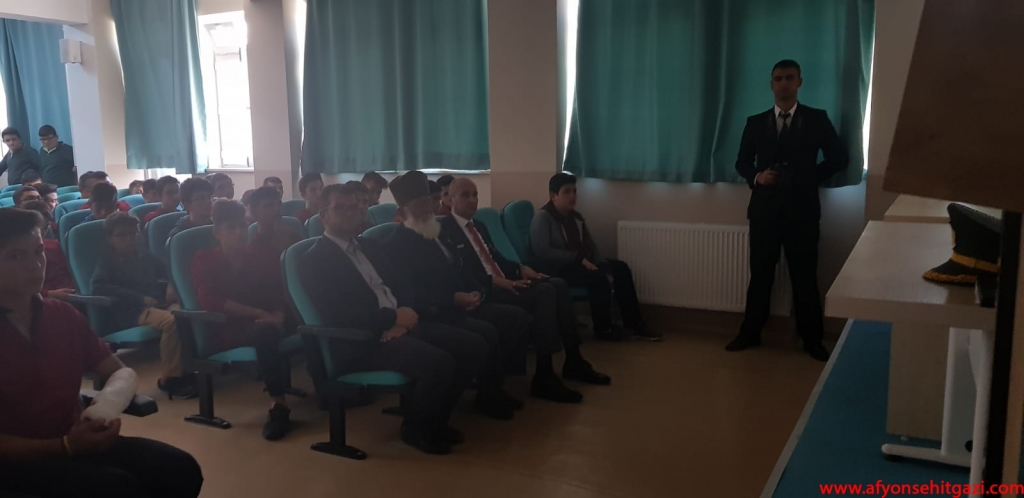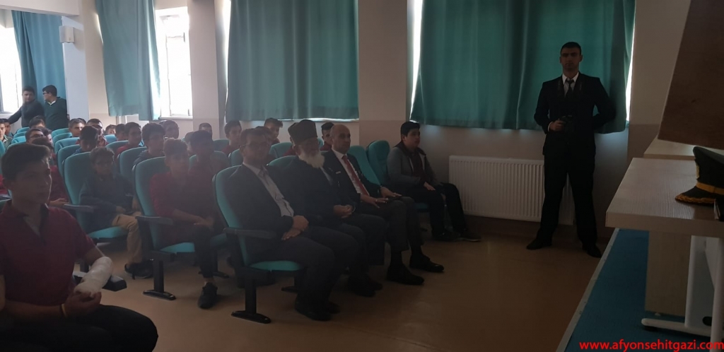 Türkiye Harp Malulü Gaziler Şehit Dul ve Yetimleri Derneği Afyonkarahisar Şube Başkanı Malil Gazi İsmail Kumartaşlı ise Şehitlik ve Gazilik olgusu üzerine paylaşımlarda bulunuldu aynı zamanda Çanakkale’den Kocatepe’ye, Sarıkamış’tan Kıbrıs’a tarihin farklı dönemlerindeki şehitlerimiz anıldı. Söyleşinin her saniyesini dikkatle ve saygıyla izleyen öğrenciler Gazilerimiz tarafından övgüyle karşılandı.