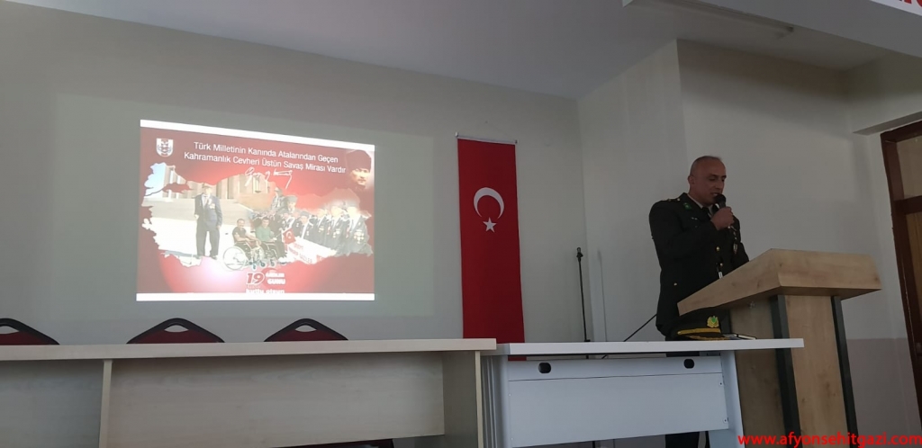 Milli Savunma Bakanlığı 19 Eylül Gaziler Günü Şehit ve Gazilere Saygı Konferansı Afyonkarahisar İkmal ve Garnizon Komutanlığı ve Derneğimiz Türkiye Harp Malulü Gaziler Şehit Dul ve Yetimleri Derneği Afyonkarahisar Şube Başkanlığı ile ortaklaşa olarak bu hafta okullarda düzenlenen programlar ile icra ediliyor.