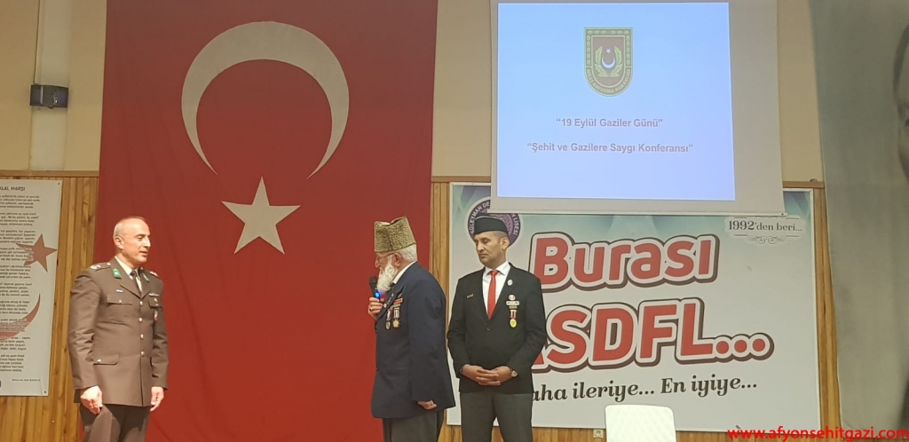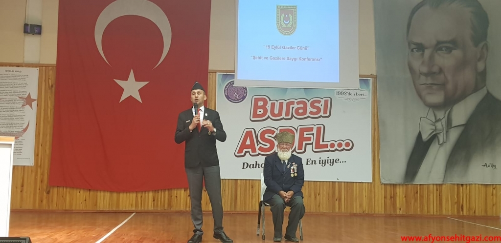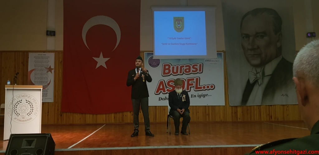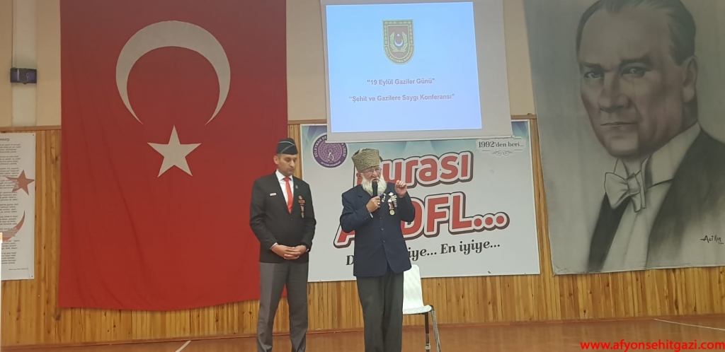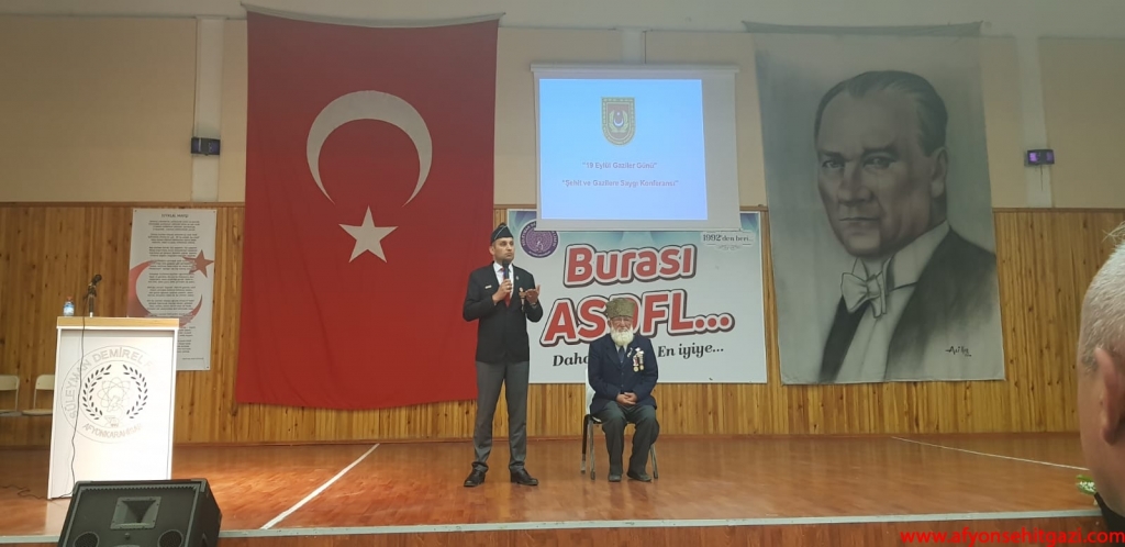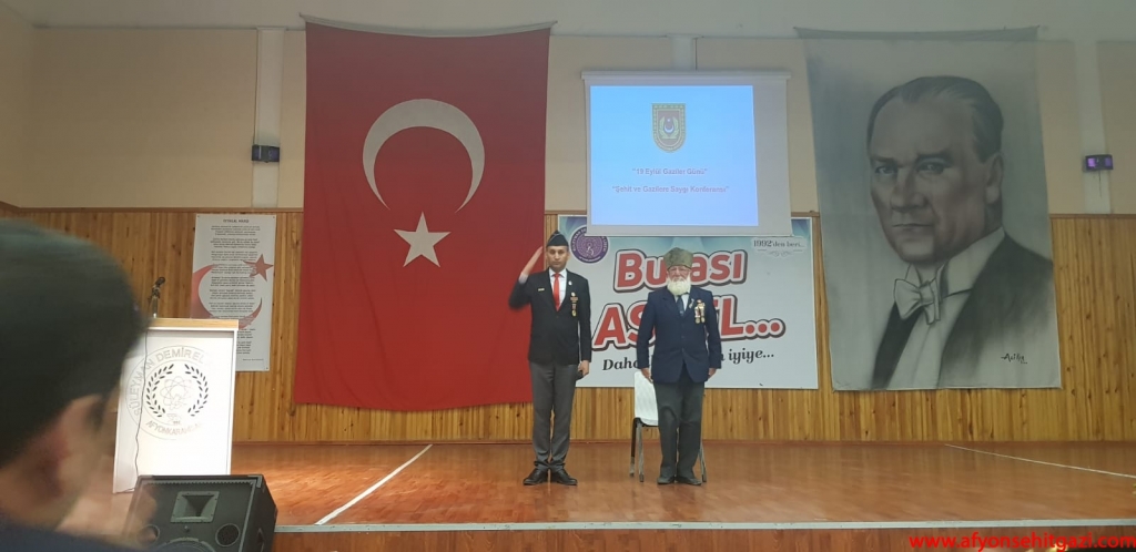 Milli Savunma Bakanlığı 19 Eylül Gaziler Günü Şehit ve Gazilere Saygı Konferansı Afyonkarahisar İkmal ve Garnizon Komutanlığı ve Derneğimiz Türkiye Harp Malulü Gaziler Şehit Dul ve Yetimleri Derneği Afyonkarahisar Şube Başkanlığı ile ortaklaşa olarak bu hafta okullarda düzenlenen programlar ile icra ediliyor.