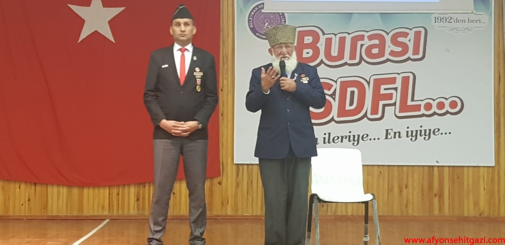 Türkiye Harp Malulü Gaziler Şehit Dul ve Yetimleri Derneği Afyonkarahisar Şube Başkanı Malil Gazi İsmail Kumartaşlı ise Şehitlik ve Gazilik olgusu üzerine paylaşımlarda bulunuldu aynı zamanda Çanakkale’den Kocatepe’ye, Sarıkamış’tan Kıbrıs’a tarihin farklı dönemlerindeki şehitlerimiz anıldı. Söyleşinin her saniyesini dikkatle ve saygıyla izleyen öğrenciler Gazilerimiz tarafından övgüyle karşılandı.