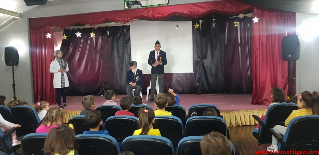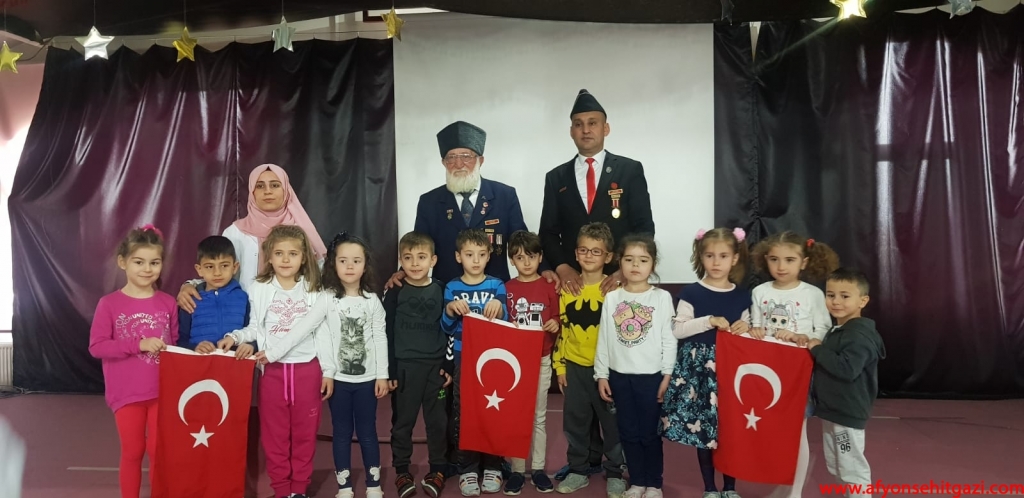 Derneğimiz Türkiye Harp Malulü Gaziler Şehit Dul ve Yetimleri Derneği Afyonkarahisar Şube Başkanlığı tarafından okullarda düzenlenen programlar ile öğrencilere şehitlik ve gazilik gaziler tarafından anlatılıyor. Program Türkiye Harp Malulü Gaziler Şehit Dul ve Yetimleri Derneği Afyonkarahisar Şube Başkanı Malül Gazi P. Uzm. Çvş. İsmail Kumartaşlı ve Kıbrıs Gazisi Tahsin Koç’un anıları, yaşadıkları, vatan sevgisi, bayrak sevgisi ile ilgili anlatımları ile devam ediyor. Programın son kısmında gazilerimiz öğrencilerin merak ettiği konulara yönelik sorularına cevap vererek programı sonlandırıyorlar.