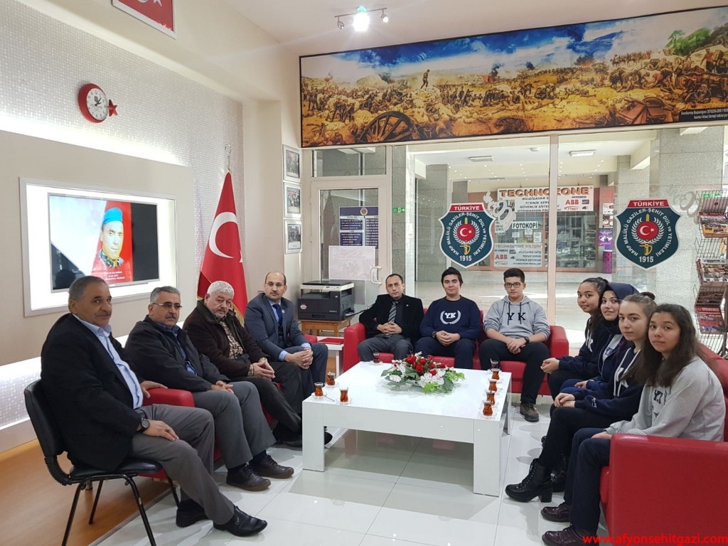 Türkiye Harp Malulü Gaziler Şehit Dul ve Yetimleri Derneği Afyonkarahisar Şube Başkanı Malul Gazi İsmail Kumartaşlı ve Kıbrıs Gazisi Tahsin Koç eğitime kesintisiz olarak devam ediyor. Son olarak Afyonkarahisar derneğimizi ziyarete gelen Özel Yavuzoğlu Koleji Öğrencileri ile buluşan Kumartaşlı ve Koç öğrencilere Şehitlik, Gazilik, Vatan Sevgisi,Şehitlerimiz hakkında bilgilendirme yaptı. Söyleşide Gazi Koç Kıbrıs Savaşı anılarını anlatarak öğrencilere derslerine çalışmaları konusunda öğütler verdi. Öğrencilerin okudukları şiirler ile duygusal anlar yaşandı.Okul Müdürü İbrahim Yiyit ziyaret ansı ve Kumartaşlı’ya hizmetlerinden dolayı bir plaket takdim etti.