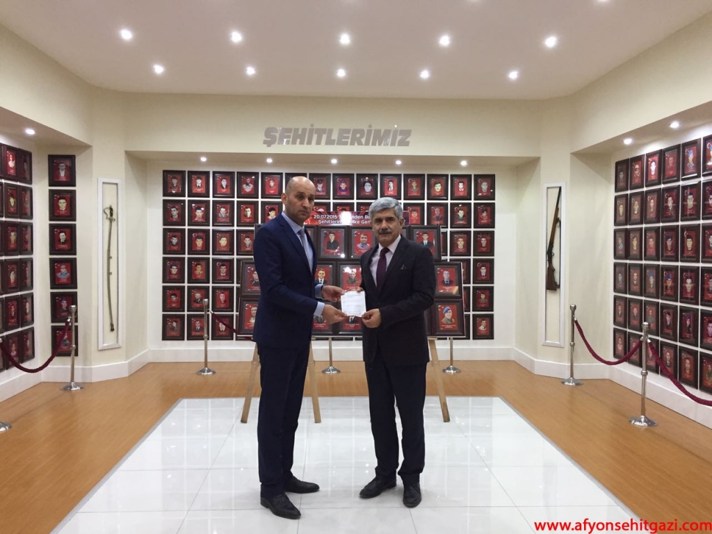 Ziyarette konuşan okul müdürü Mükremin İÇLİ “Okul olarak öğrencilerimiz ile bir kermes düzenledik bu kermesin gelirini bizlerin bugün burada rahat yaşayabilmesi için canlarını veren aziz şehitlerimizin manevi ruhlarını yaşatan onların hizmetinde koşan derneğimize bağışlamak istedik. En azından şehitlerimize karşı böyle teşekkür edelim dedik.