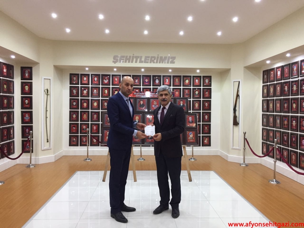 Başkan Kumartaşlı ziyaretten duyduğu memnuniyeti dile getirerek dernek çalışmaları Afyonkarahisar şehit gazileri hakkında bilgiler verdi. Anlamlı bağıştan dolayı teşekkür etti.Ziyaret sonunda hatıra fotoğrafı çekindi.