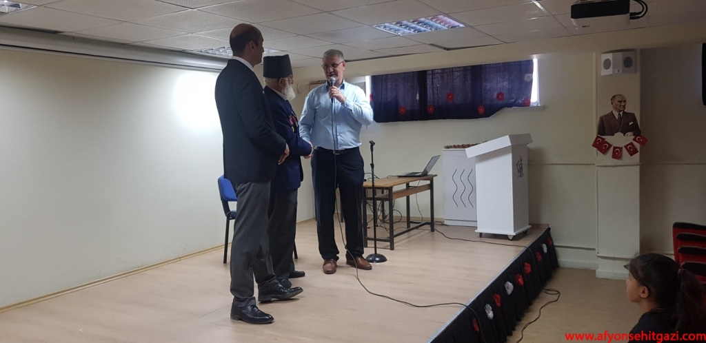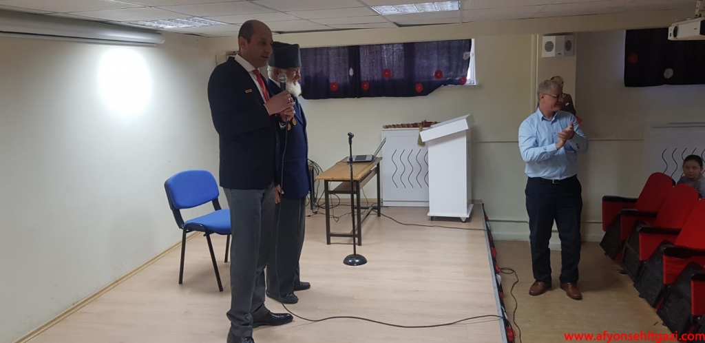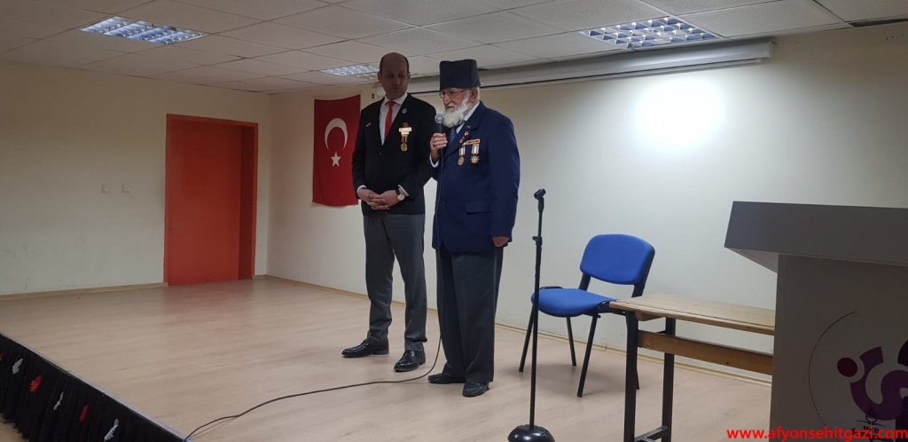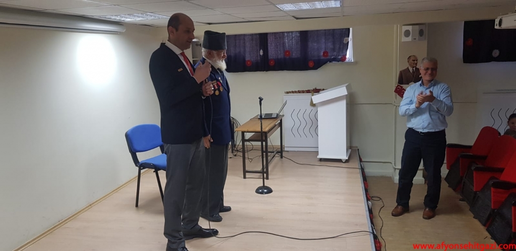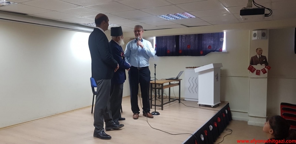 Türkiye Harp Malulü Gaziler Şehit Dul ve Yetimleri Derneği Afyonkarahisar Şube Başkanı Malül Gazi P. Uzm. Çvş. İsmail Kumartaşlı ise Şehitlik ve Gazilik olgusu üzerine paylaşımlarda bulundu aynı zamanda Çanakkale’den Kocatepe’ye, Sarıkamış’tan Kıbrıs’a tarihin farklı dönemlerindeki şehitlerimiz anıldı. Söyleşinin her saniyesini dikkatle ve saygıyla izleyen öğrenciler Gazilerimiz tarafından övgüyle karşılandı.