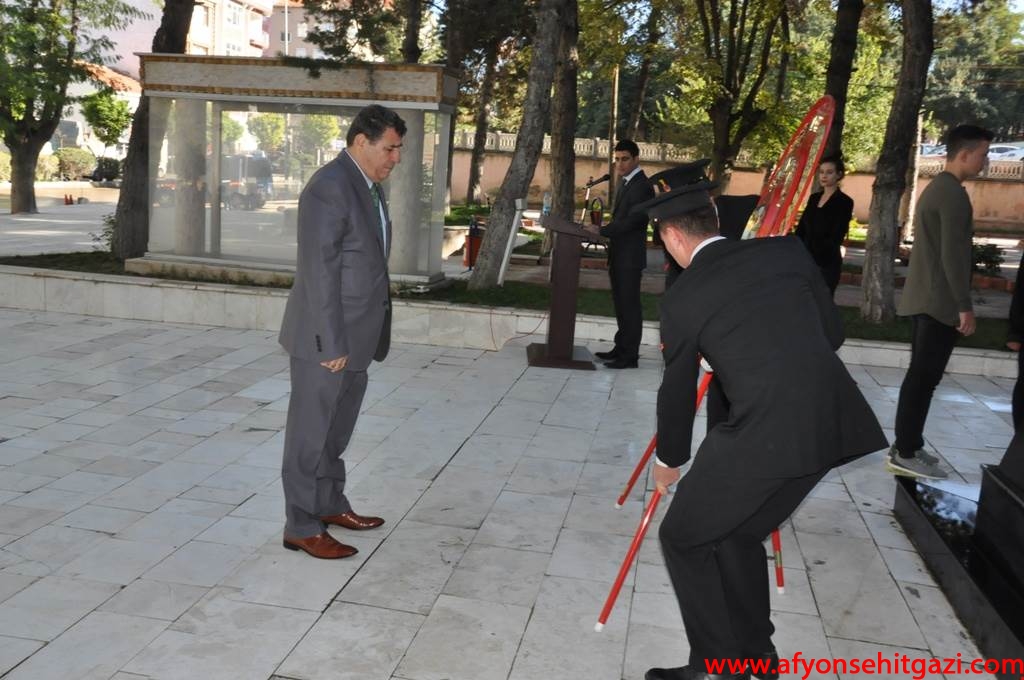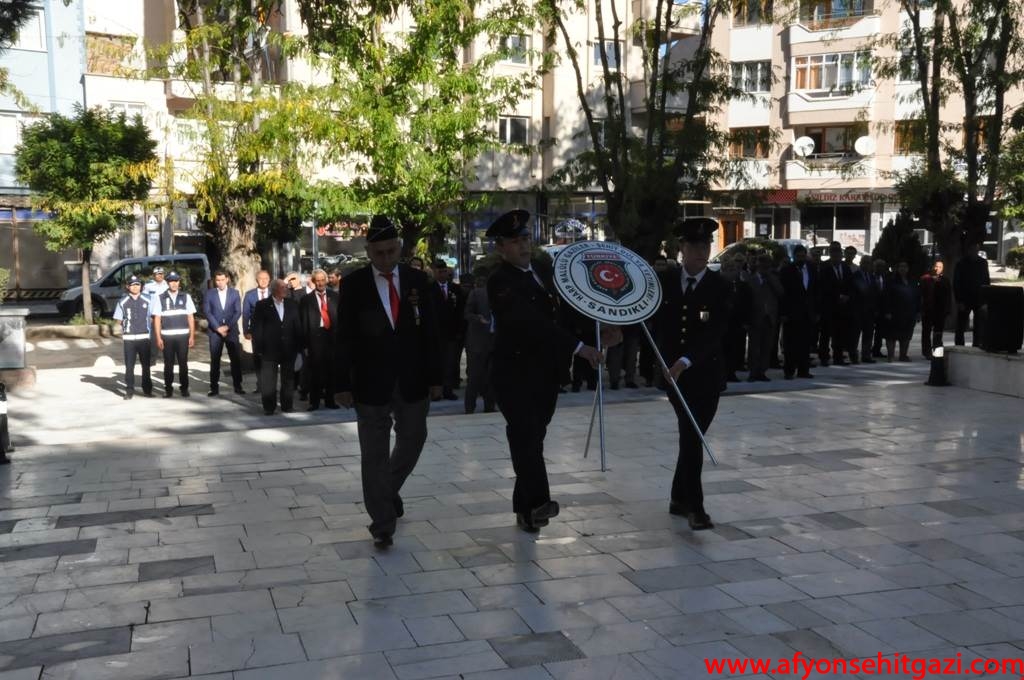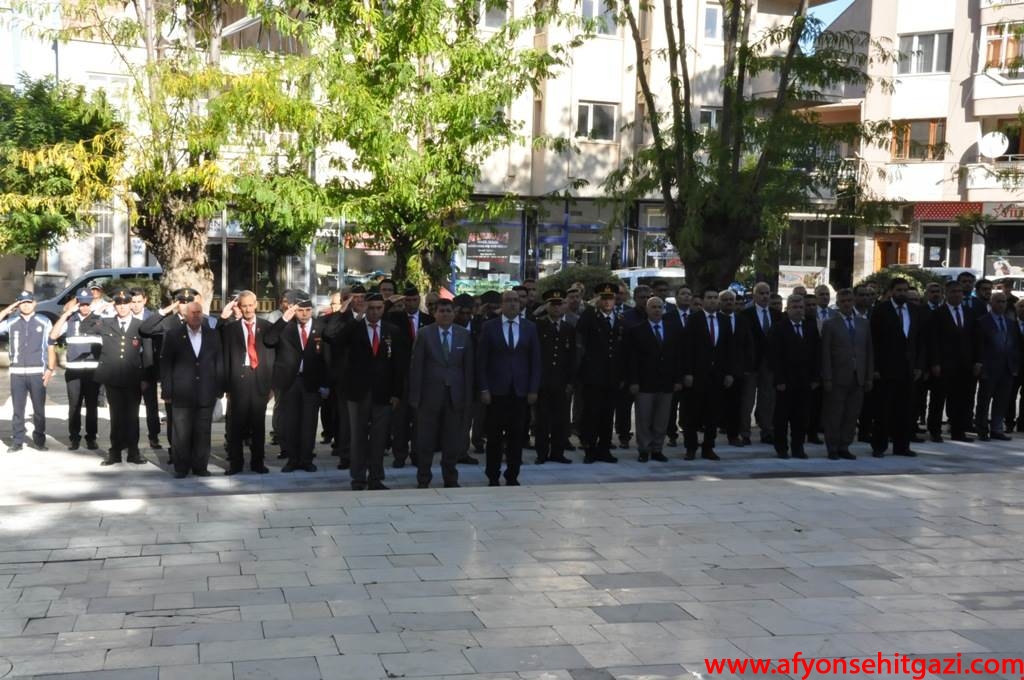 Çelenk koyma programı; ilçe Kaymakam Eflatun Can Tortop, Belediye Başkanı Mustafa Çöl, Türkiye Harp Malulü Gaziler Şehit Dul ve Yetimleri Derneği Sandıklı Temsilcisi Yusuf Akin, İlçe protokolü, kurum amirleri, siyasi parti temsilcileri, öğrenci ve vatandaşların katılımıyla gerçekleşti.