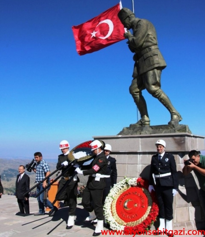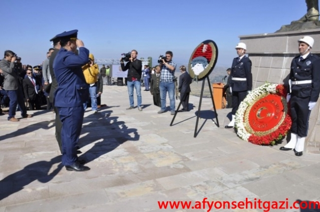 Törenin açılış konuşmasını yapan Albay Şan, Türk İstiklal Harbi’nin son safhasını ve zirvesini teşkil eden Büyük Taarruz’un ve zaferin ilk gününde kahraman Türk ordusunun Başkomutan Gazi Mustafa Kemal Atatürk önderliğinde tarihe altın harflerle yazılan büyük zaferin 95. yılını yaşamanın haklı gururu ve sevincinin yaşandığını ifade etti. Albay Şan, “Kutsal vatan topraklarımızı istilaya ve milletimizi tarih sahnesinden silmeye kalkışan düşmana karşı tüm imkansızlıklara rağmen yüce milletimizin ve kahraman ordumuzun sarsılmaz azmi yüksek irade gücü vatanseverliği ve kahramanlığı ile kazanılan büyük zaferin taarruzu 26 Ağustos 1922’de büyük bir mücadele ruhu inanç ve azimle üzerinde bulunduğumuz Kocatepe’den verilen emir ile başlamıştır. Düşman ordusu yapılan muharebeler sonunda 30 Ağustos 1922’de dört taraftan sarılarak Gazi Mustafa Kemal Paşa’nın ateş hatları arasında bizzat Zafer Tepe’den idare ettiği savaşta tamamen yok edilmiş ve esir alınmıştır. Müteakiben Atatürk o tarihi ‘ordular ilk hedefiniz Akdenizdir ileri’ emrini burada vermiştir. Türk ordusu ve milleti ve koşullar ne olursa olsun bir bütün olarak aziz vatanına göz dikenleri daima yok edecektir. Bağımsız Türkiye Cumhuriyeti ve necip Türk milleti daima var olacaktır” dedi.