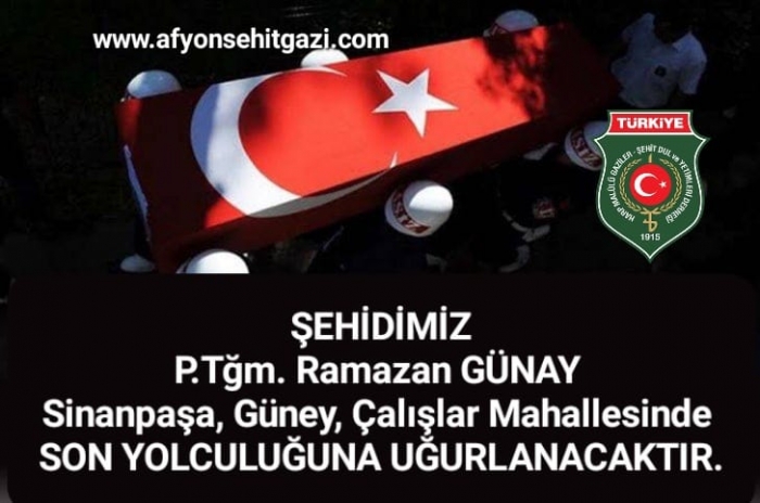 Şehidimiz P.Tğm.Ramazan GÜNAY Ailesinin İsteği Üzerine, Afyonkarahisar, Sinanpaşa, Güney Kasabası, Çalışlar Mahallesi Mezarlığında Defnedilecektir.