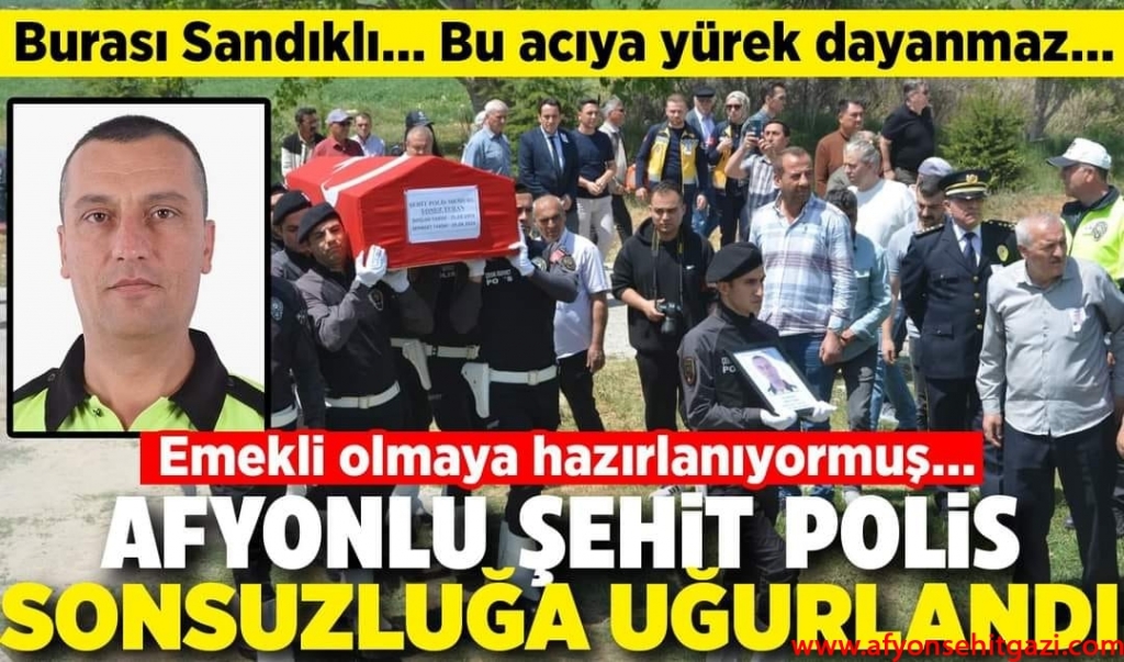 Afyonkarahisar Sandıklı İlçesi Alacamii Köyü nüfusuna kayıtlı Isparta Emniyet Müdürlüğü emrinde görev yapan Polis Memuru Yonuz TURAN 29 Nisan 2024 günü 07.30 sıralarında Isparta-Eğirdir karayolunun 3. Kilometresinde Trafik Kazası sonucu şehit olmuştur. Şehidimiz evli ve 3 çocuk babasıdır. Başımız Sağ Olsun...