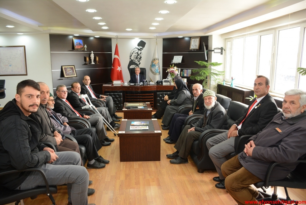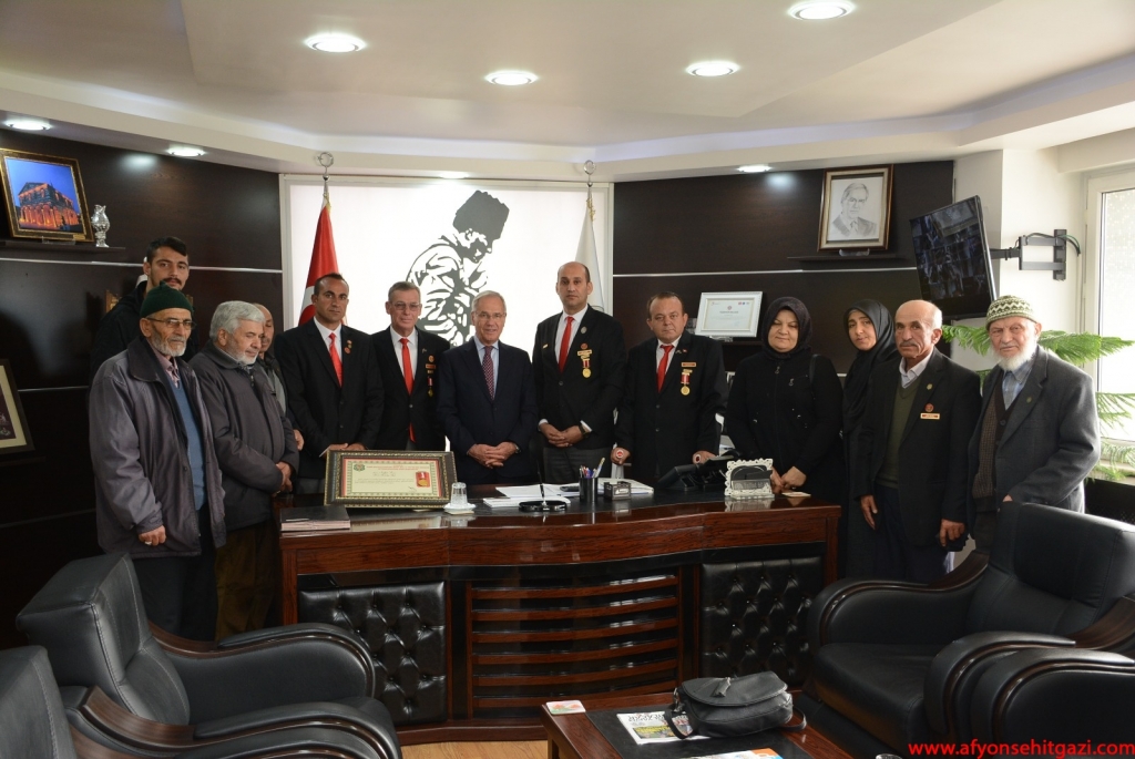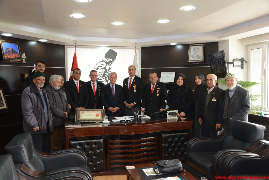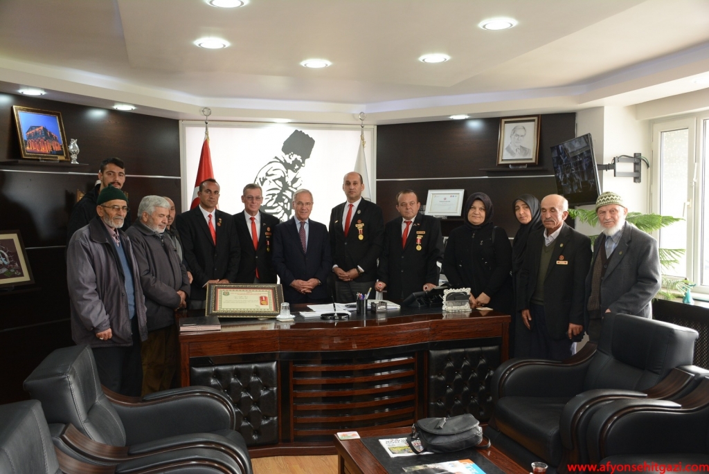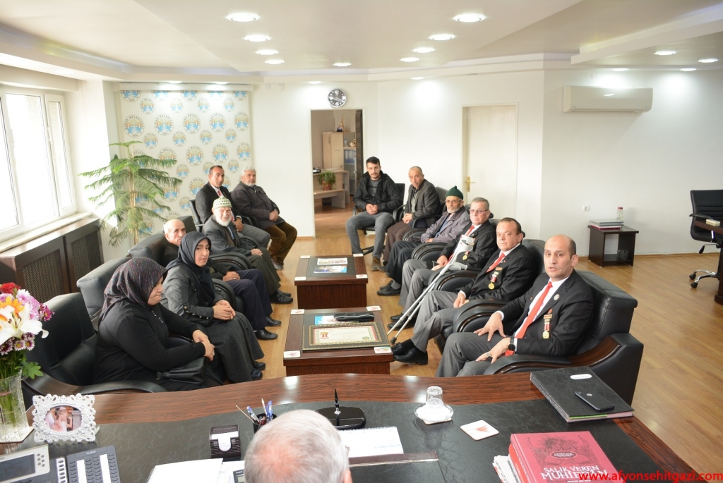 Türkiye Harp Malülü Gaziler Şehit Dul ve Yetimleri Derneği Afyonkarahisar Şube Başkanı İsmail Kumartaşlı, Dinar ilçe Temsilcisi Hasan Ceylan ve şehit aileleri ile gaziler Dinar Belediye Başkanı Saffet Acar’ı makamında ziyaret etti. Ziyarette Başkan Acar’a dernek faaliyetleri hakkında bilgi verildi. Türkiye Harp Malülü Gaziler Şehit Dul ve Yetimleri Derneği Afyonkarahisar Şube Başkanı İsmail Kumartaşlı ve Dinar ilçe Temsilcisi Hasan Ceylan; Dernek üyelerine, Şehit Aileleri ve Gazilere vermiş olduğu desteklerden dolayı teşekkür ederek, “Dernek Şeref Madalyası ve Onur Belgesi” takdim ettiler. Dinar Belediye Başkanı Saffet Acar, Şube Başkanı İsmail Kumartaşlı ve Dinar Temsilcisi Hasan Ceylan’ın çalışmalarını yakından takip ettiğini, birlikte uyum içinde örnek olacak bir şekilde çalıştıklarını belirtti. Başkan Saffet Acar yaptığı konuşmasında; “Şehit Aileleri ve Gazilerimiz başımızın tacıdır. Onlar için ne yapsak azdır. Onlara hizmet boynumuzun borcu, benim için asil bir görevdir. Ziyaretinizden dolayı ve beni bu madalyaya layık gördüğünüz için hepinize teşekkür ediyorum, her zaman emrinizdeyim.” Dedi.