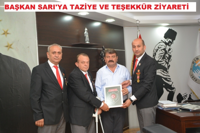 Türkiye Harp Malülü Gaziler Şehit Dul ve Yetimleri Derneği Afyonkarahisar Şube Başkanı Gazi Piyade Uzman Çavuş İsmail Kumartaşlı, Dinar Temsilcisi Hasan Ceylan, Sandıklı Temsilcisi Yusuf Akin, Şehit Babaları ve Gaziler, Dinar Belediye Başkanı Nihat Sarı’ya teşekkür ziyaretinde bulundu.