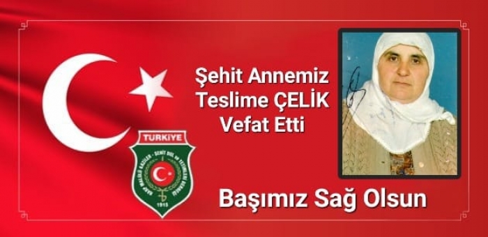 02.08.1998 Tarihinde Hakkari Yüksekova Kırsalında EYP Patlaması Sonucu Şehit Olan Dinar İlçemiz, Yüksel Köyü Nüfusuna Kayıtlı Şehidimiz, Şehit P.Uzm.Çvş. Ali ÇELİK'in Annesi Teslime ÇELİK (1944 Doğumlu) 9 Nisan Günü Yaşlılığa Bağlı Sebeplerden Dolayı Evinde Vefat Etmiştir.