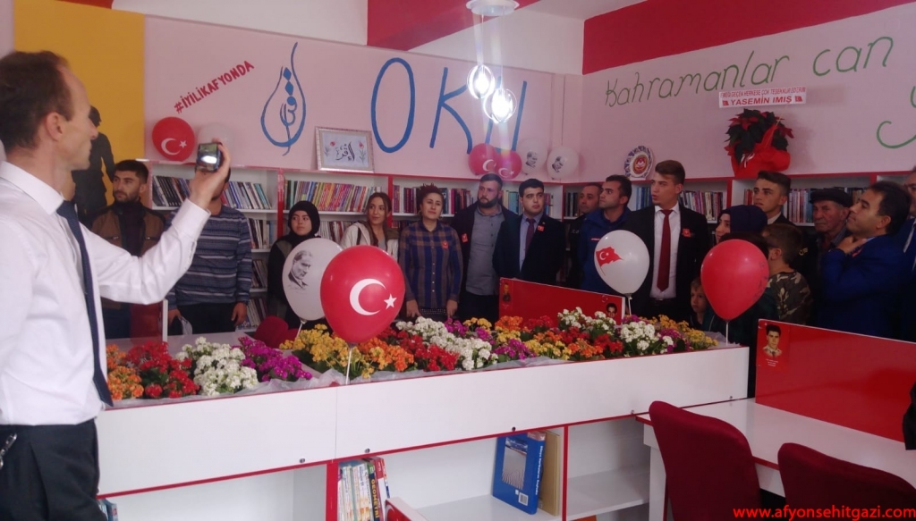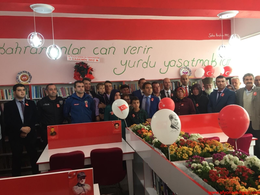 3 Binden fazla kitap Şehit İbrahim Imış kütüphanesinde öğrencilerin beğenisine sunuldu. Yapılan açılış törenine; şehidin eşi Yasemin Imış, babası Ali Imış, annesi Şifa Imış, İlçe Kaymakamı Nurullah Kaya, Şuhut Belediye Başkanı Recep Bozkurt, AK Parti Şuhut İlçe Başkanı Gültekin Özdemir, İlçe Milli Eğitim Müdürü Hüseyin Eroğlu, İlçe Jandarma Komutanı Teğmen Hasan Yassıkaya, Türkiye Harp Malulü Gaziler Şehit Dul ve Yetimler Derneği Başkanı İsmail Kumartaşlı, protokol üyeleri ve şehidin yakınları katıldı.