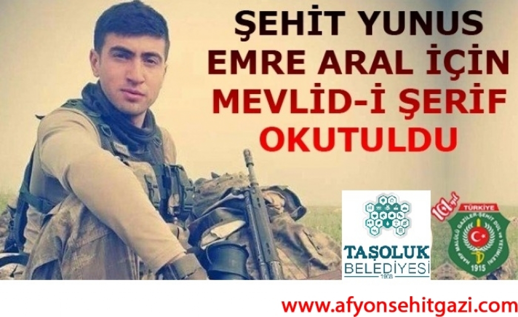 Şehidimiz Şehit P.Uzm. Onb. Yunus Emre Aral Hakkâri / Çukurca kırsalında PKK'lı teröristleri etkisiz hale getirmek için düzenlenen operasyon sürdürülürken 03-09-2017 tarihinde teröristler ile girdiği silahlı çatışmada şehit düşmüştü.Şehidimizin ailesi ve Taşoluk Belediye Başkanı Murat ÖNER tarafından yaklaşık 1500 kişinin katıldığı bir program ile Şehidimiz Şehit P.Uzm. Onb. Yunus Emre Aral şahadetinin birinci yılında Sinanpaşa ilçesi Taşoluk Beldesindeki baba evinde dualar ile anıldı.