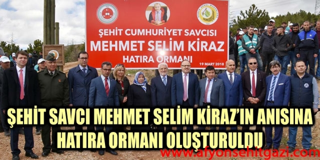 Şehit Cumhuriyet Savcısı Mehmet Selim Kiraz, şehadetinin 3. Yıldönümünde saygıyla anıldı. Şehit Mehmet Selim Kiraz için Afyonkarahisar Merkez Saraydüzü Köyünde oluşturulan Hatıra Ormanına Vali Mustafa Tutulmaz’ın katılımıyla fidanlar dikildi.