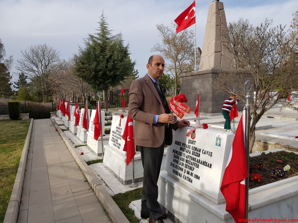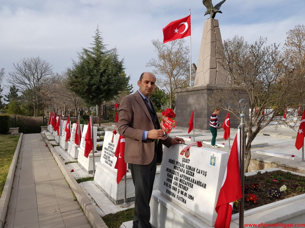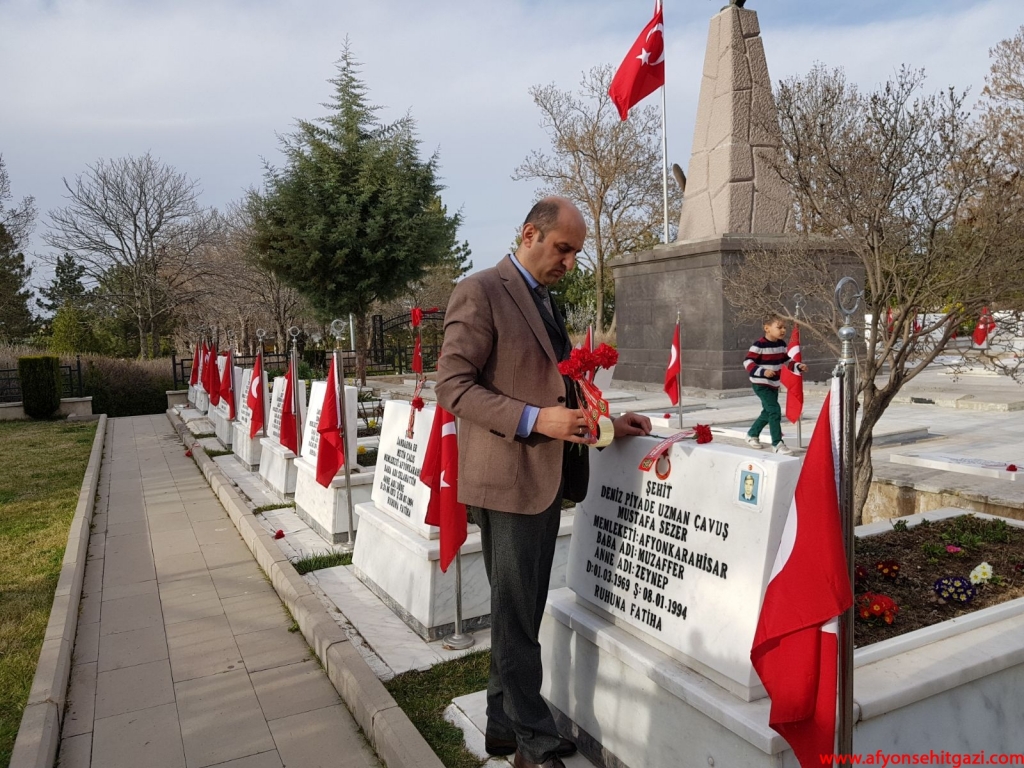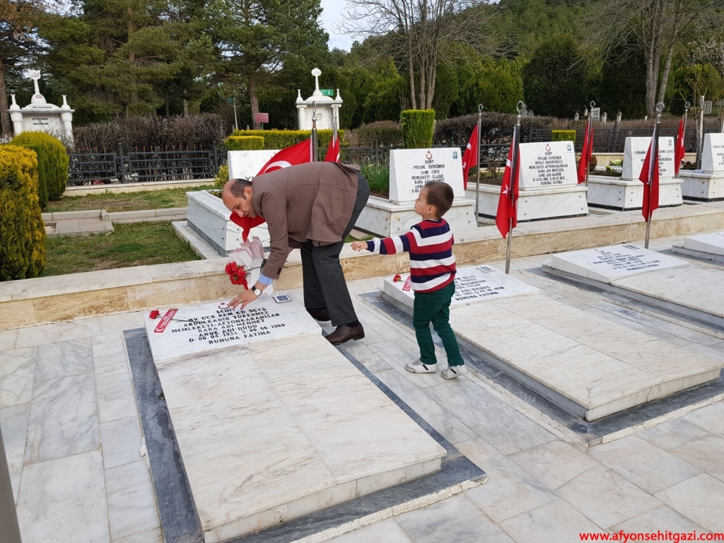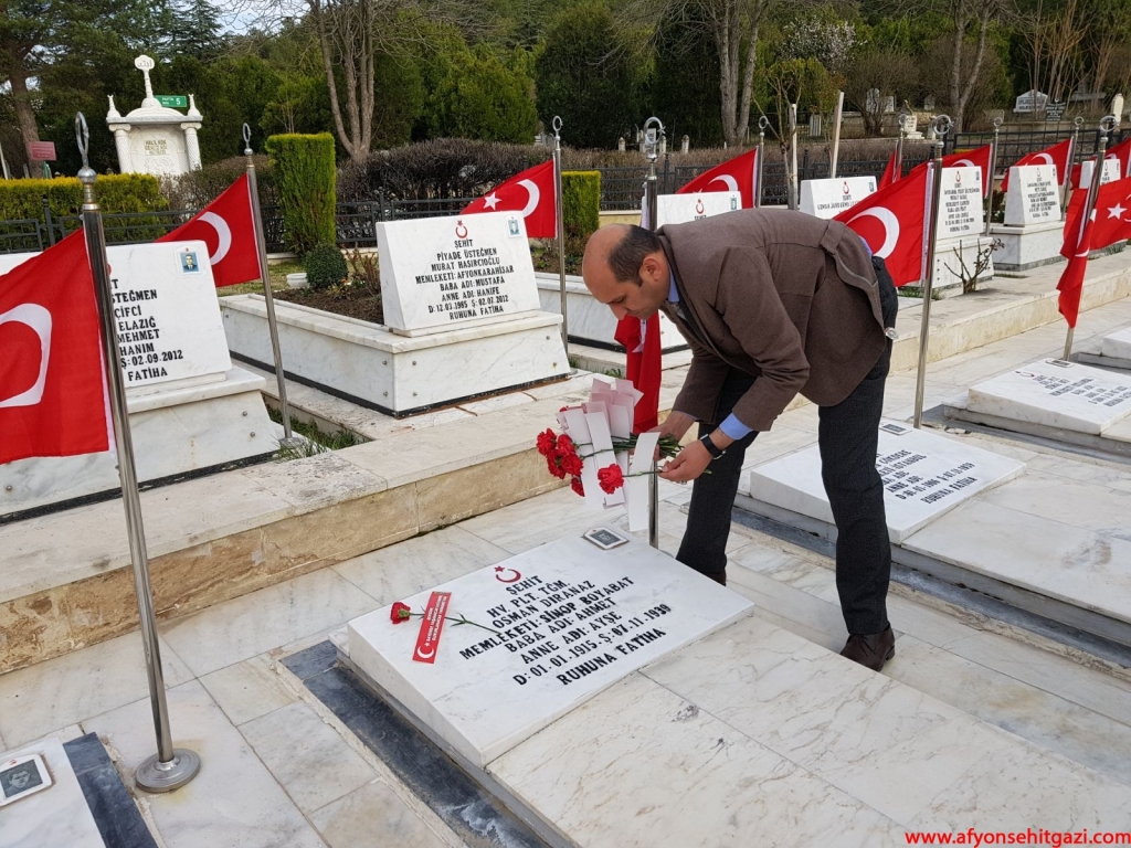 Türkiye Harp Malulü Gaziler, Şehit Dul ve Yetimleri Dernek Şube Başkanı Malul Gazi İsmail Kumartaşlı,her zaman olduğu gibi 18 Mart Şehitleri Anma Gününde de Şehit mezarlarının üzerine ‘’ŞEHİDİM SAYENDE YAŞANACAK VATANIMIZ GURURLANACAK TARİHİMİZ VAR ‘’yazılı karanfiller bıraktı ve Şehitlikte şehit aileleri ile buluşarak anne babaların ellerinden öptü.