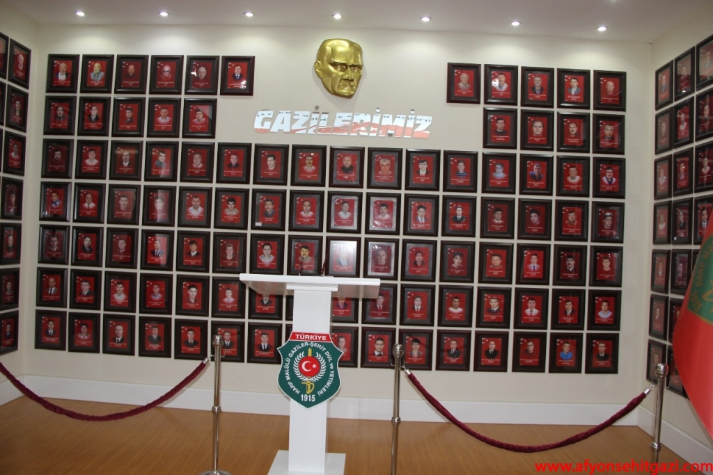 Türkiye Harp Malulü Gaziler Şehit Dul ve Yetimleri Derneği Afyonkarahisar Şubesinde oluşturulan fotoğraf köşesinde, şehitlerin hatırası yaşatılıyor.