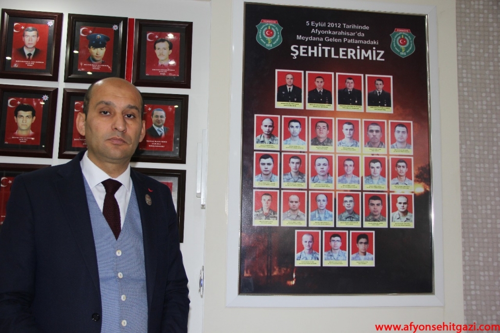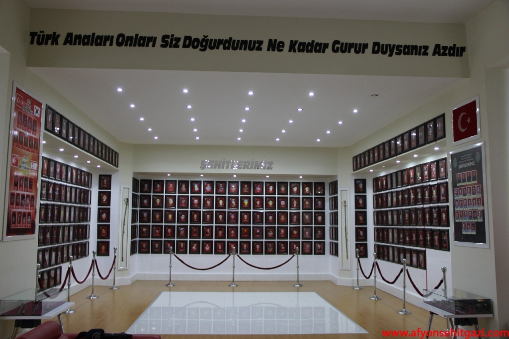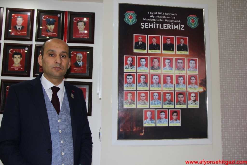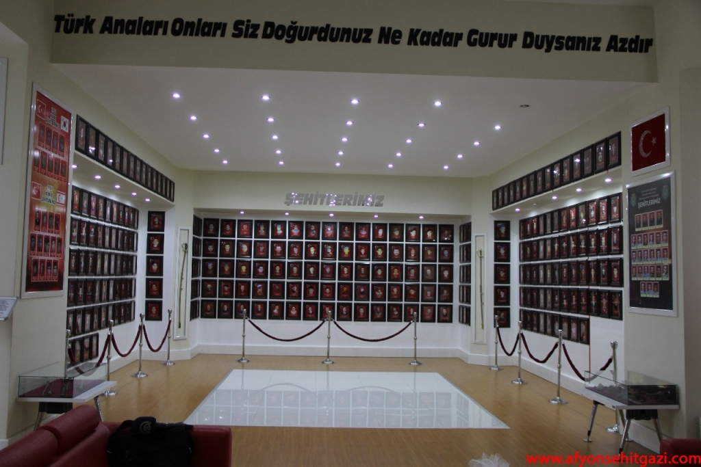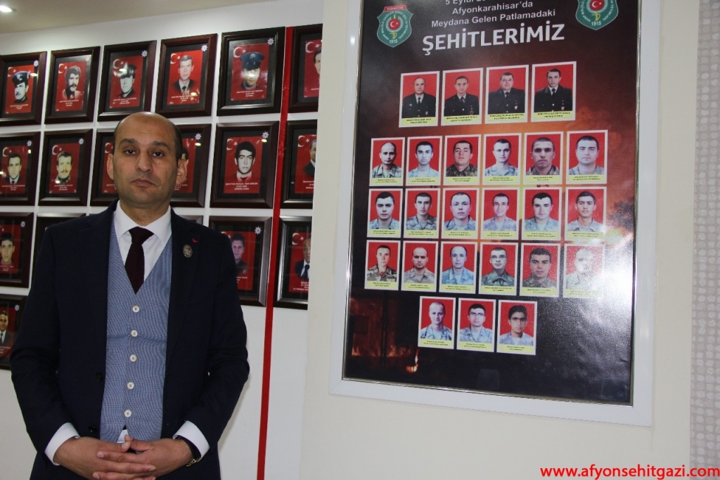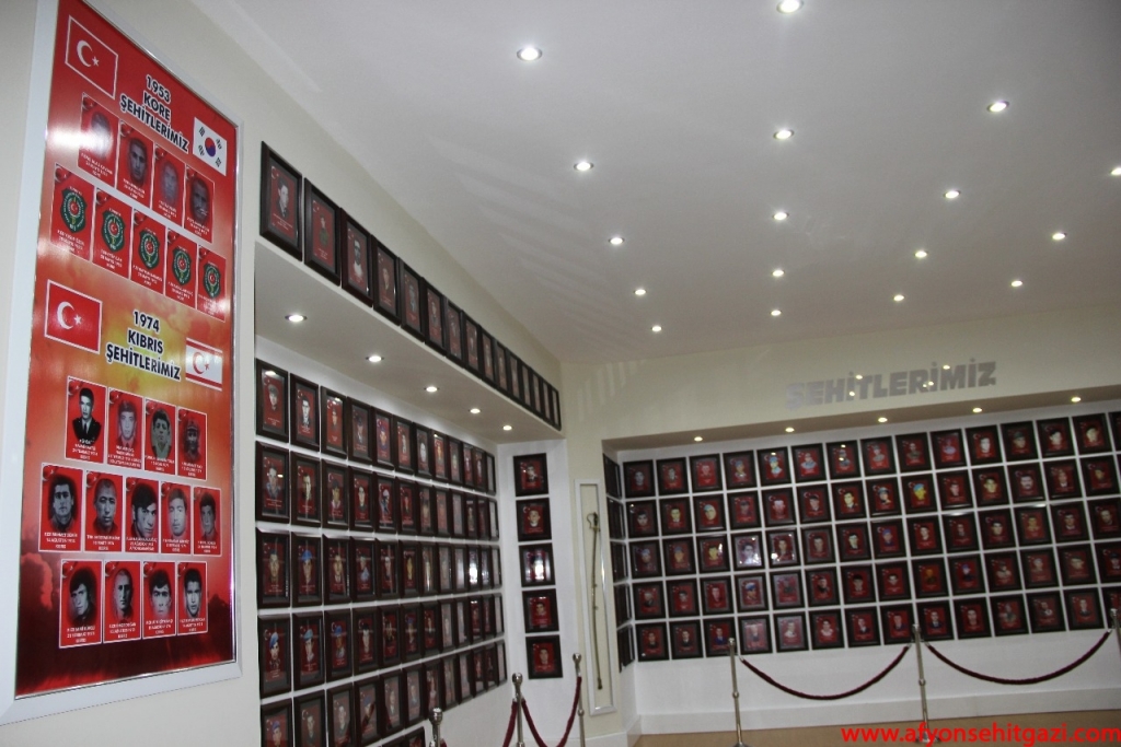 Mühimmat patlamasında şehit düşenlerin fotoğrafları da köşede Afyonkarahisar'da 5 Eylül 2012'de meydana gelen mühimmat deposu patlamasında şehit düşen askerlerin hatırasının da ayrı bir köşede yaşatıldığını belirten Kumartaşlı, şunları kaydetti: "Ziyaretçilere bu olayın ayrıntılarını da anlatıyoruz. Fotoğrafların altındaki cam fanusta, olayı hatırlatan duvar ve bomba parçaları ile patlamamış bombalar sergileniyor. Ayrıca buradaki tüm şehitlerimizin resimleri, iki bayrak arasında yer alan dev ekranda gün boyunca izlenebiliyor. Buraya gelen aileler, 'Oğlumun, babamın, kardeşimin fotoğrafı ne zaman çıkacak' diye bekliyor."