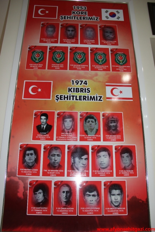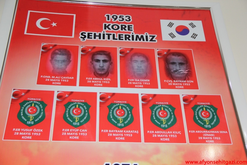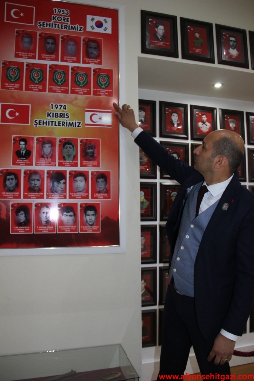 Kore Savaşı ve Kıbrıs Barış Harekâtı şehitlerinin fotoğraflarına ilişkin de ciddi bir çalışma yaptıklarını bildiren Kumartaşlı, "Ankara'daki Muharip Gaziler Derneği Genel Merkezinden ve Afyonkarahisar'daki ailelerimizden temin edebildiğimiz fotoğrafları derleyip, ayrı bir köşe yaptık. Kore'deki Afyonkarahisarlı 9 şehitten 4'ünün fotoğrafını bulduk. Diğerlerinin isimleri ve bilgileri var. Kıbrıs'ta şehit düşen 12 askerimizin de resimlerini bulduk." diye konuştu. Kumartaşlı, fotoğraf köşesinin gazi ve şehit yakınlarının yanı sıra derneği ziyarete gelen misafirleri çok duygulandırdığını, herkesten teşekkür aldıklarını ifade etti.