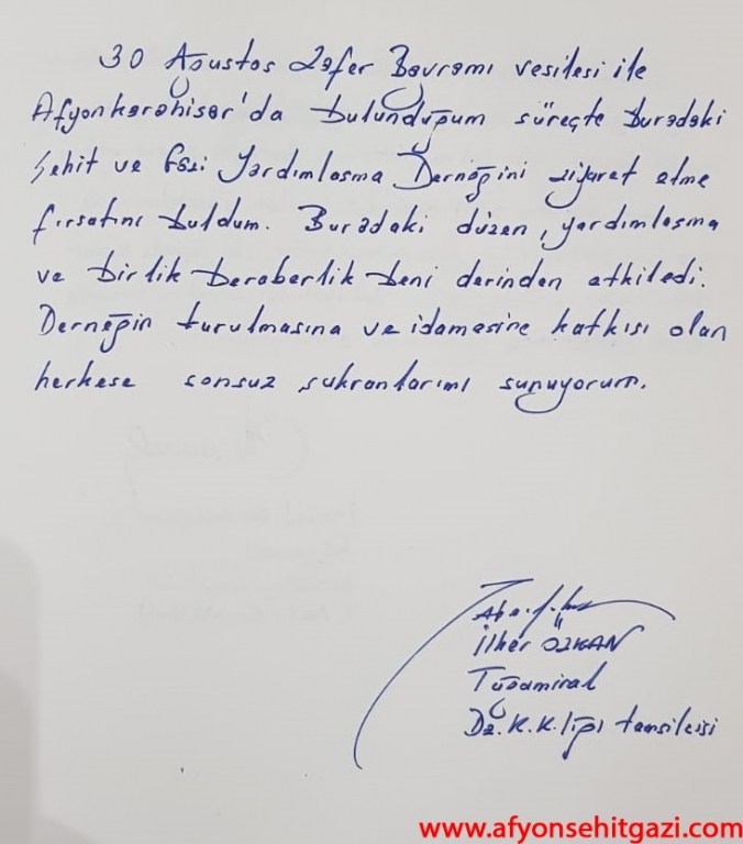 Ziyarete K.K.K.lığı Temsilcisi olarak Afyonkarahisar İkmal ve Garnizon Komutanı Tuğg. Özdemir ŞAN, M.S.B Temsilcisi olarak Tuğg. İsmail AMANVERMEZ, DZ.K.K.lığı Temsilcisi olarak Tuğamiral İlker ÖZKAN, HV.K.K lığı Temsilcisi olarak Hv. Tuğg. Bülent ÇETİN, katıldı.