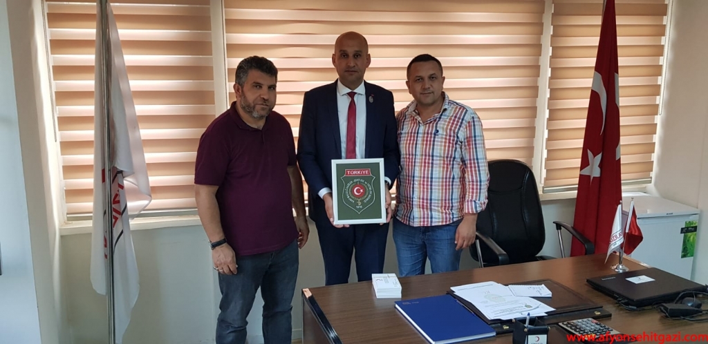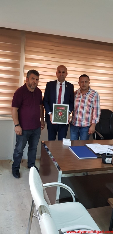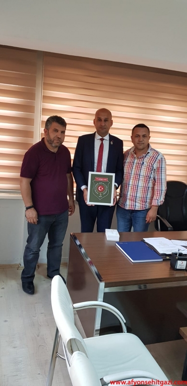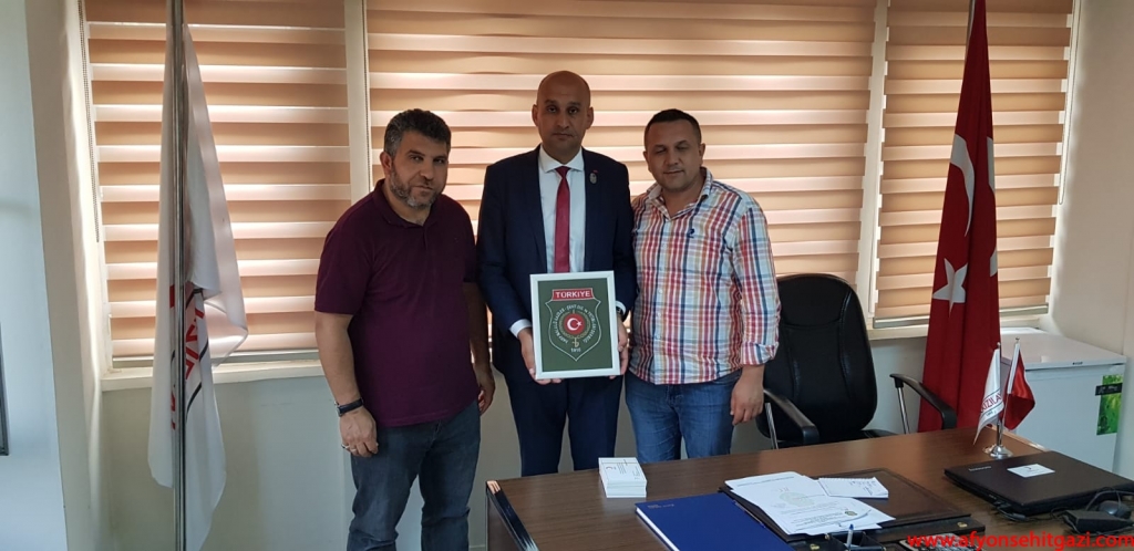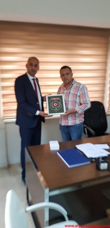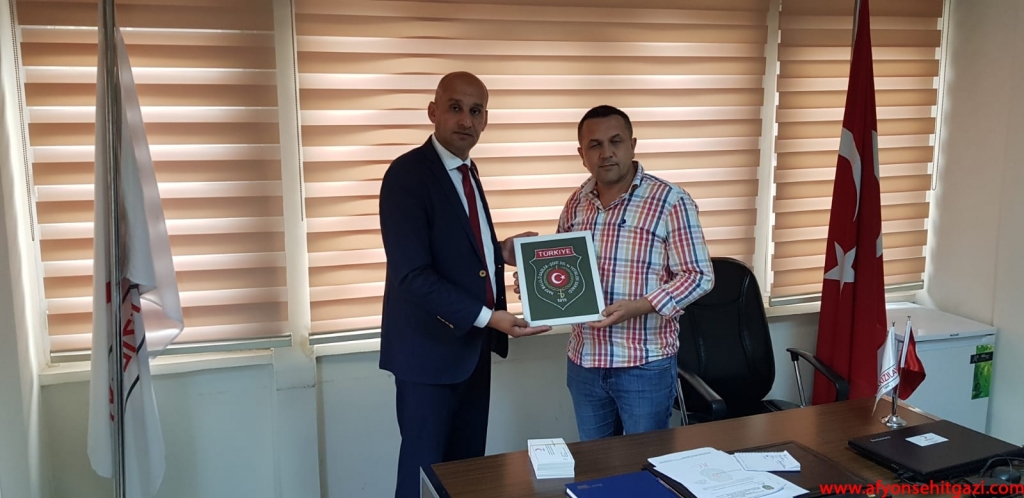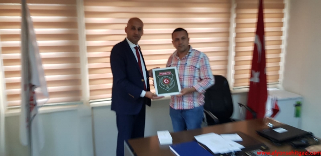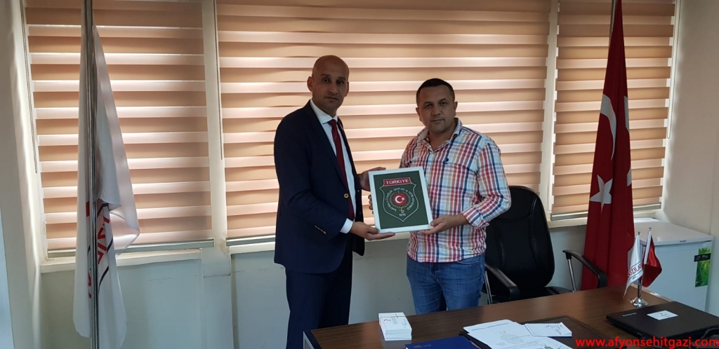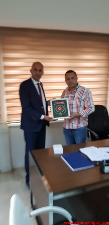 Türkiye Harp Malülü Gaziler Şehit Dul ve Yetimleri Derneği Afyonkarahisar Şube Başkanı İsmail Kumartaşlı, Türk Kızılay Derneği Afyonkarahisar Şube Başkanı Fatih Okyar'a Teşekkür ederek derneğin logosunun bulunduğu şilti takdim etti.