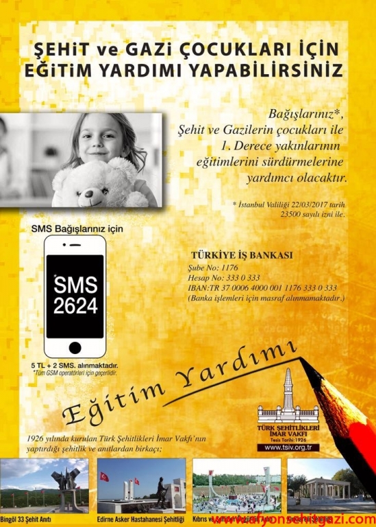 TÜRK ŞEHİTLİKLERİ İMAR VAKFI EĞİTİM DESTEĞİ İÇİN YARDIMLARINIZI BEKLİYOR.