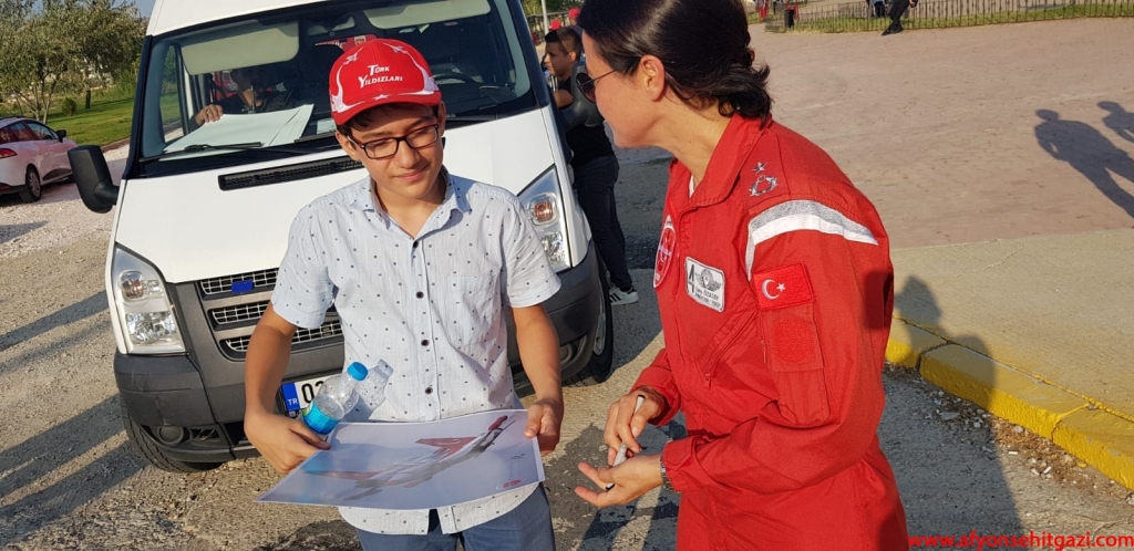 Türk Hava Kuvvetlerinin akrobasi timi Türk Yıldızları'nın Afyonkarahisar semalarındaki gösterisini yapmadan önce prova uçuşlarını Şehit Aileleri ve Gaziler için yaptı.Gösteri öncesinde uçuş ekibi ve pilotlar Afyonkarahisar Hava Meydan Komutanlığında Türkiye Harp Malulü Gaziler, Şehit Dul ve Yetimleri Derneği Afyonkarahisar Şubesi üyesi olan Şehit Aileleri ile bir araya gelerek sohbet etti ve hatıra fotoğrafı çektirdi.Buluşmada Pilotların Şehit Çocukları ile yakından ilgilenmeleri duygusal anların yaşanmasına neden oldu.