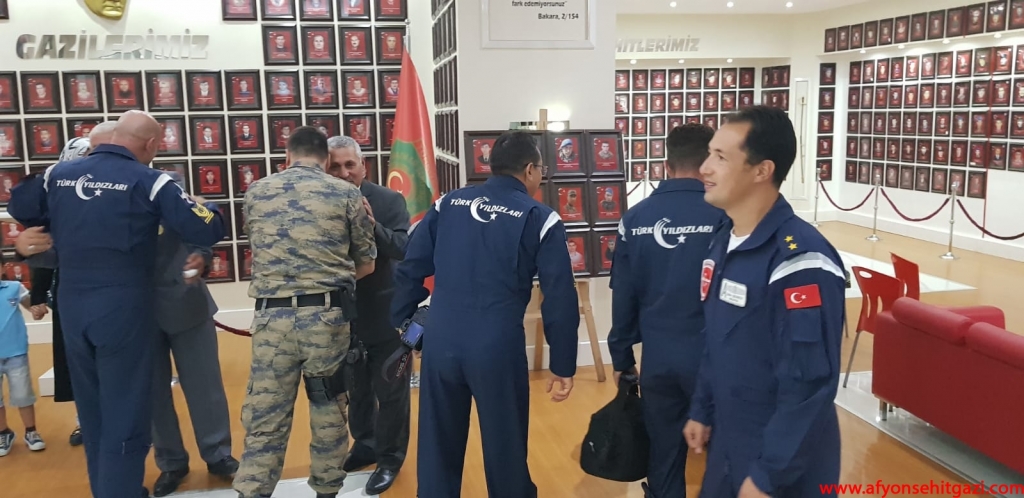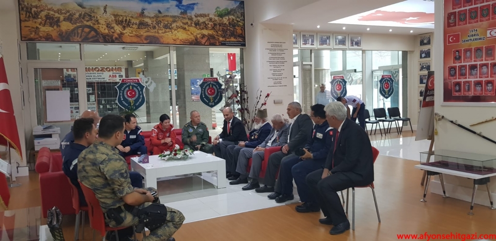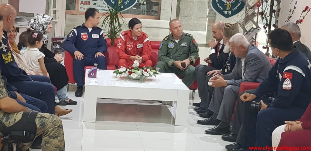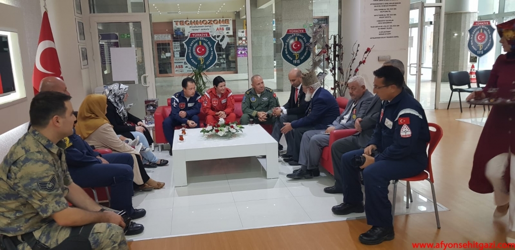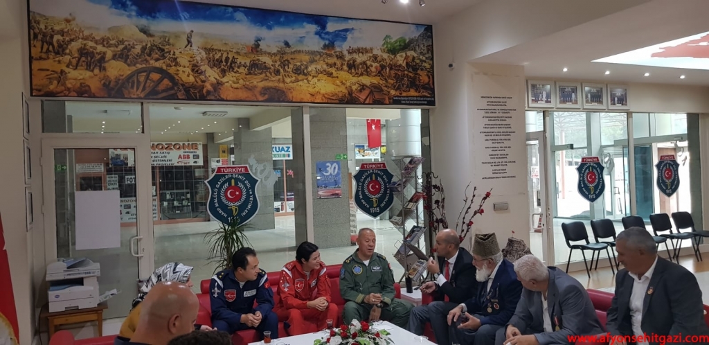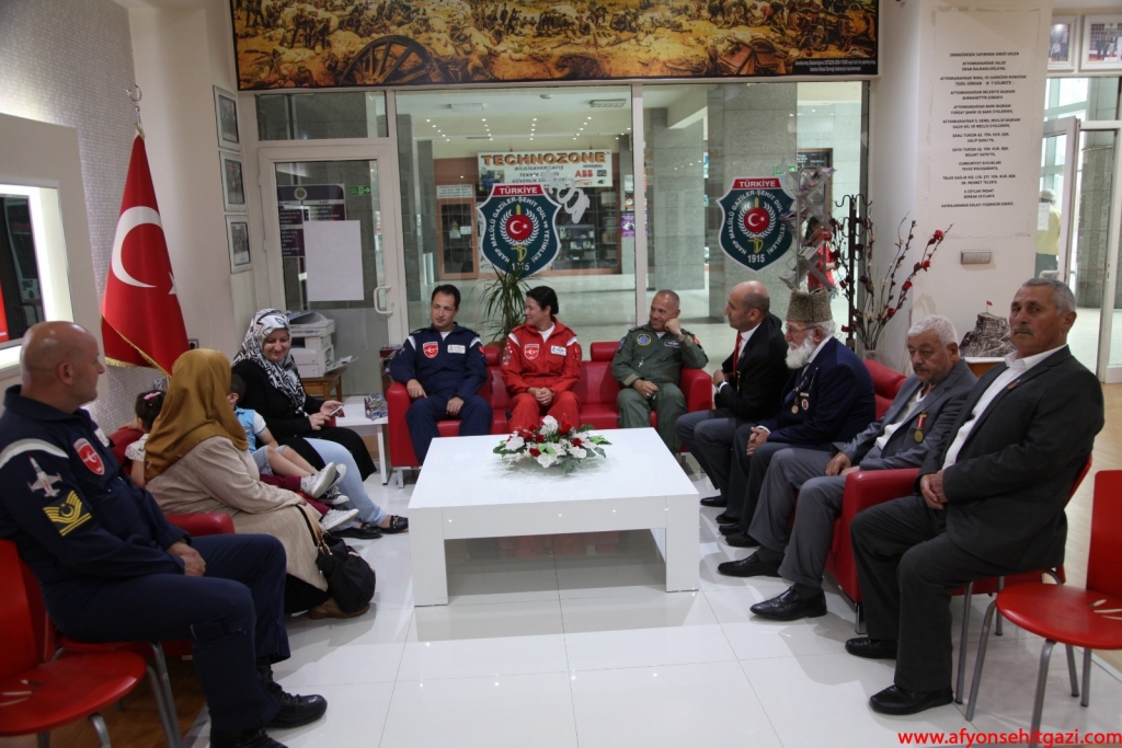 Zafer Haftası etkinlikleri çerçevesinde ilimiz semalarında gösteri yapan Türk Hava Kuvvetleri Akrobasi Timi ‘Türk Yıldızları’, Türkiye Harp Malulü Gaziler, Şehit Dul ve Yetimleri Derneği Afyonkarahisar şubesini ziyaret ettiler.