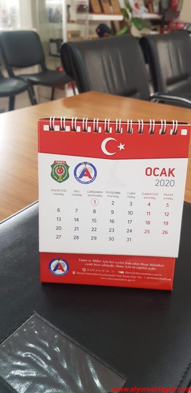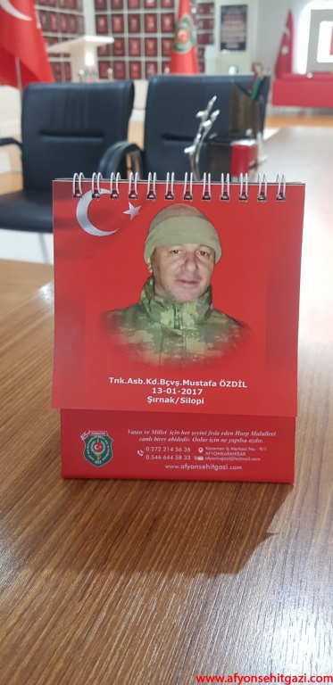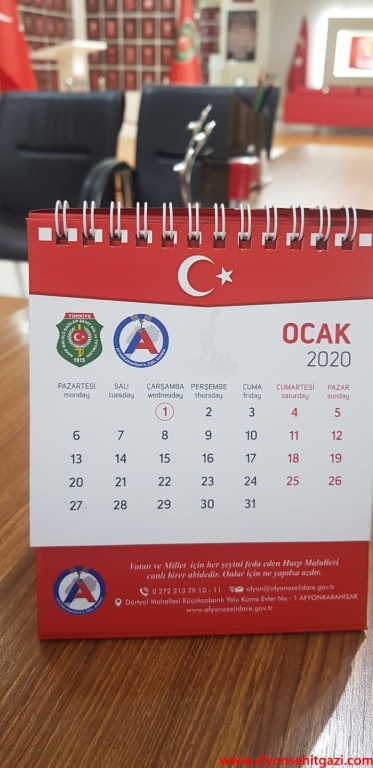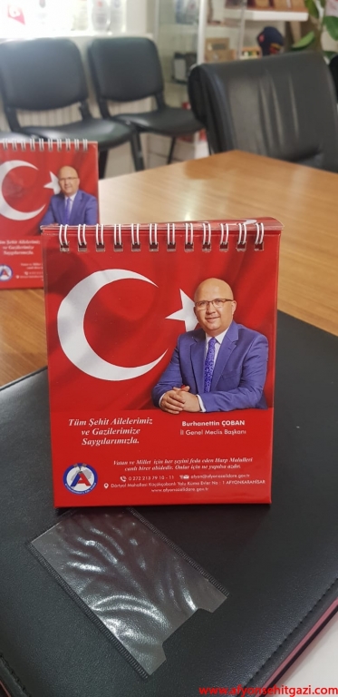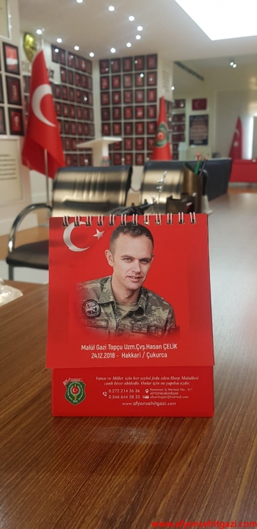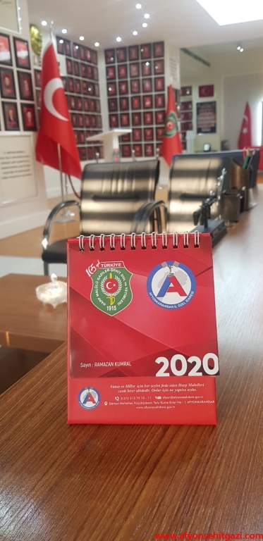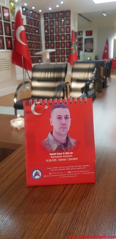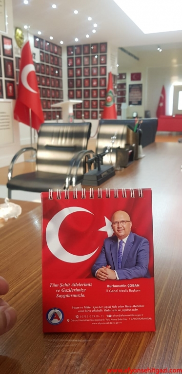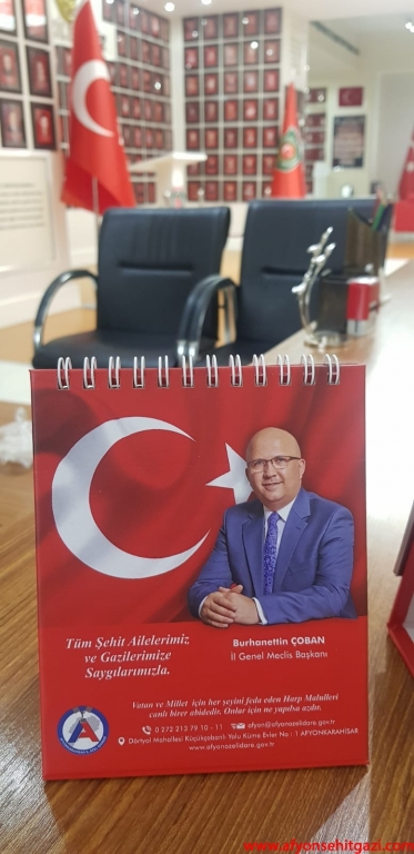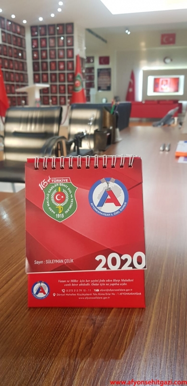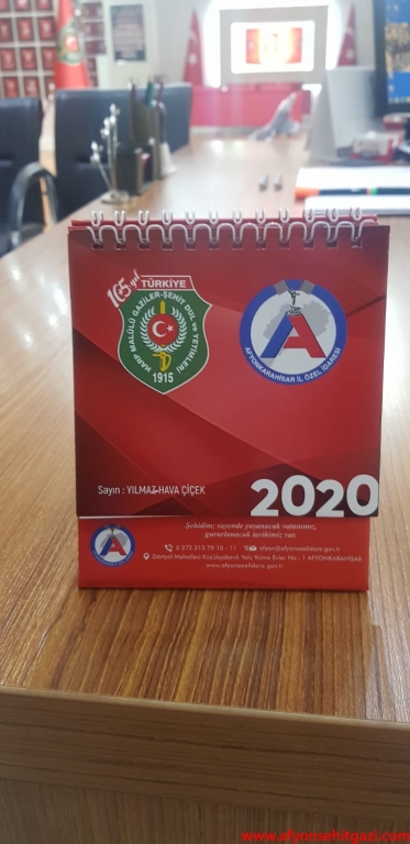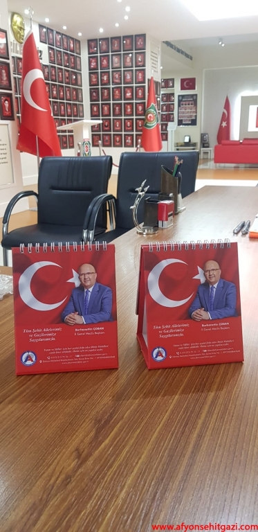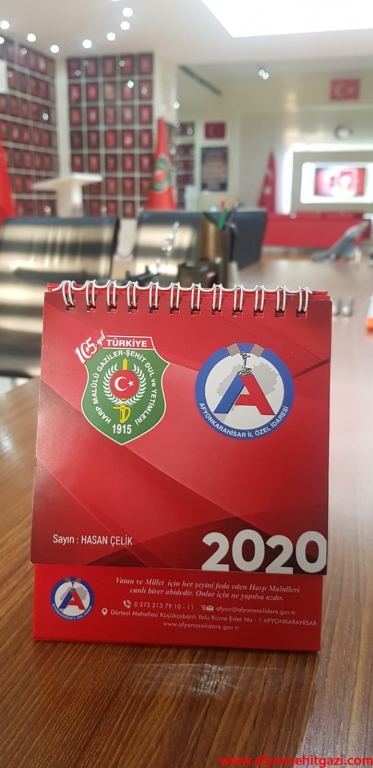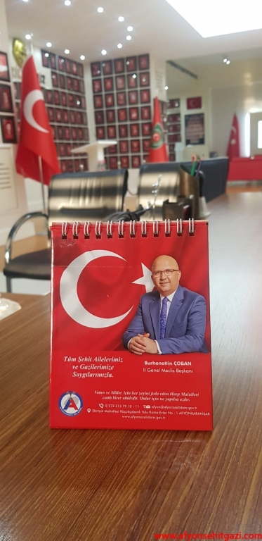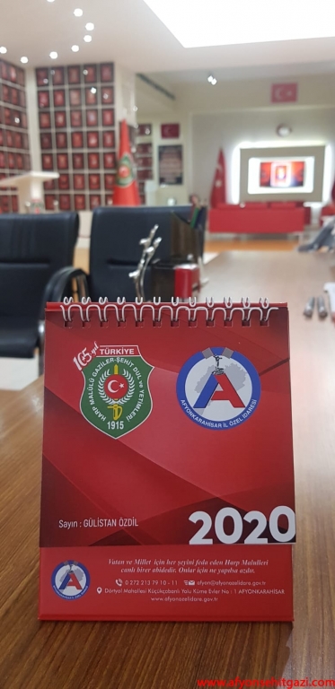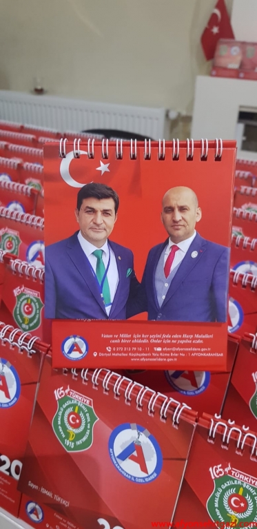 Türkiye Harp Malulü Gaziler, Şehit, Dul ve Yetimleri Derneği Afyonkarahisar Şubesi tarafından dizayn edilen ve İl Özel idaresi tarafından bastımı yaptırılan her şehit ve gazi için hazırlanan özel takvimin dağıtımı sürüyor.