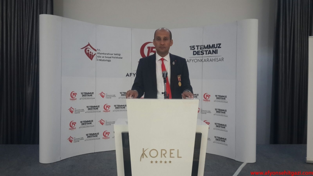 Kurtuluşumuzun ve kendi özgürlüğümüzün temeli olmuştur. Bunu hep beraber yaşadık, burada bulunan herkes buna şahitlik yaptı ve hatta bir kısmımız bunu bizzat yaşadı. Artık bu millet kendine pranga vurulamayacağını, kendileri tarafından zarar verilemeyeceğini o gün çok büyük bir gayret, fedakârlıkla ve canı pahasına göstermiştir. İçinde bulunduğumuz topraklar tarih boyunca bu vatanı vatan yapan en önemli özelliğini taşıma ve şehitlik mertebesine en fazla şehit veren illerden birisidir. Şu anda beraber olduğumuz değerli şehit yakınlarımız en büyük fedakârlığı göstermişlerdir. Bu fedakarlığın karşılığını da bu 80 milyon milletimiz görmektedir, takdir etmektedir ve değerlendirmektedir. Bunun bu şekilde bilinmesini isterim. Ayrıca devletimiz şehitlerimizin, gazilerimizin yanındadır, her zaman onların dertleri ile dertlenmektedir, onların problemlerini çözmek için her türlü gayreti sonuna kadar göstermektedir. Ben fazla vaktinizi almayacağım. Buradan Üniversitemizde darbe girişiminin değişik yönlerinin anlatılacağı panel katılacağız. Yarın akşamda yine meydanda demokrasi nöbetimizi geçen yıl yaptığımız gibi hep beraber tutacağız. Allah bu millete bir daha bu tür sıkıntıları göstermesin, Allah şehitlerimizin mekanını cennet etsin, yakınlarına sabır versin. Bu duygu ve düşünceler ile hepinize en kalbi duyularımı sunuyorum.” dedi.