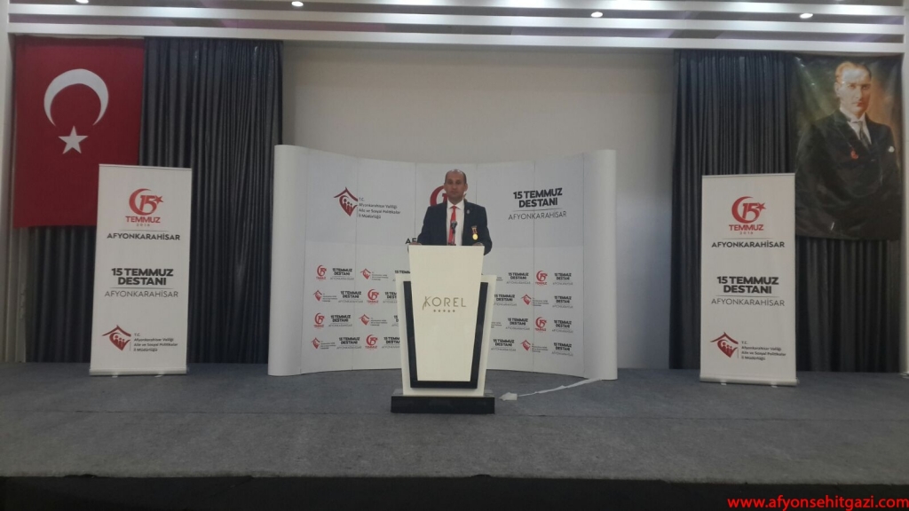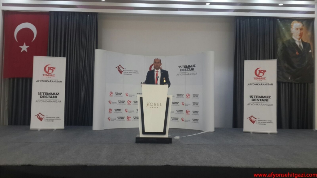 Daha sonra kürsüye gelen Vali Mustafa Tutulmaz;“15 Temmuz’un bir etkinliği olarak bugün bir aradayız. 15 Temmuz’u unutmamak adına, unutturmamak adına bu hafta değişik etkinlikler içerisinde bulunduk ve bunun bir sonucu olarak ta bugün burada bir araya geldik. Biraz sonrada Üniversitemizde 15 Temmuz ile ilgili bir panelde birlikte olacağız. Değerli misafirler 15 Temmuz bir darbe girişimidir. Ancak sonuçları itibariyle bakıldığında darbe girişiminden daha öte ülkemizin bölünmesi, parçalanması, iç savaşa sürüklenmesinin bir provasıdır. Türkiye bulunduğu coğrafyada her zaman ön planda olmuş, gerek insanlığa, gerek İslamiyet’e önemli hizmetleri bulunmuş bir ülkedir. Lider bir ülkedir ve bunun liderliğini daha fazla hazmedemeyen batılı ülkeler ve onların içimizdeki maşaları ile 15 Temmuz darbe girişimi teşebbüsü olmuştur. Ancak o gün karanlıkta başlayan bir akşam sabaha çok güzel bir aydınlıkta ulaşmıştır. Çünkü artık bu millet Malazgirt’te bu toprakları vatan yapan Malazgirt’in benzerini yaşamıştır. Yine bu içinde bulunduğumuz toprakların Zaferin temeli olmasının başlangıcındakine benzer şekilde o gün yaşamışız.