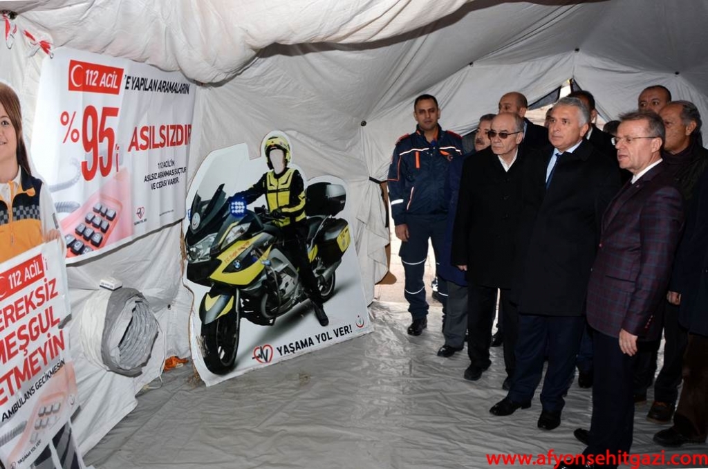 Anıtpark önünde düzenlenen Acil Sağlık Hizmetleri Haftası Etkinliklerine Valimiz Aziz Yıldırım’ın yanı sıra İl Sağlık Müdürü Necip Yemenici, Sağlık Müdür Yardımcıları İbrahim Karadağ ve Deniz Fırat, Kızılay Derneği Başkanı İsmail Danıştekin, Türkiye Harp Malulü Gaziler Şehit Dul ve Yetimleri Derneği Afyonkarahisar Şube Başkanı Malul Gazi İsmail Kumartaşlı,112 Acil Servis çalışanları, UMKE ve AFAD ekipleri katıldı.
